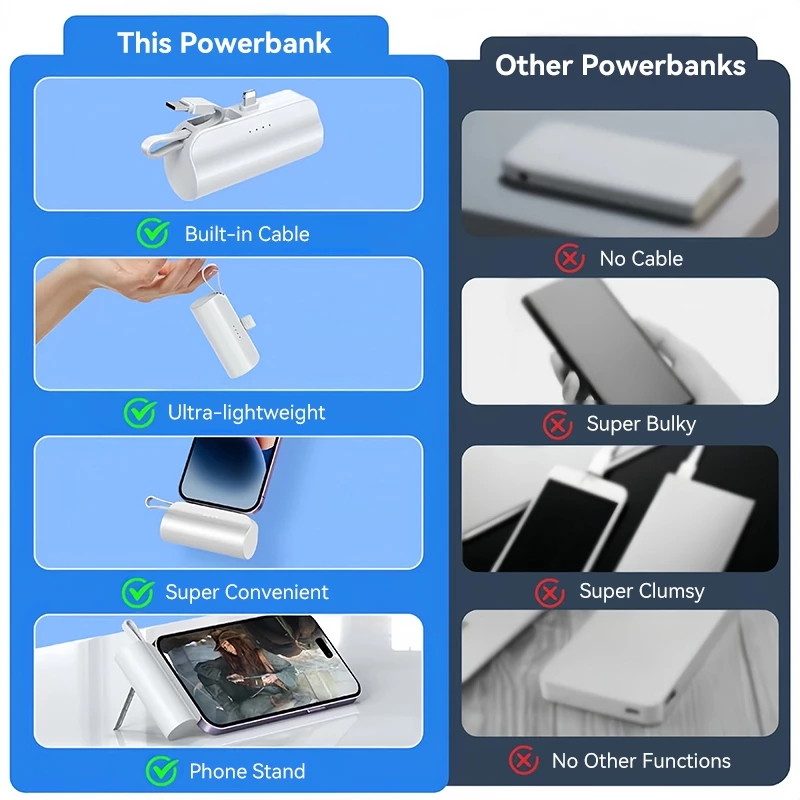 Xiaom Mini 10000mAh Powerbank 2in1 Small 3C 22.5WFast Charging Portable Built in Cable Type C iPhone