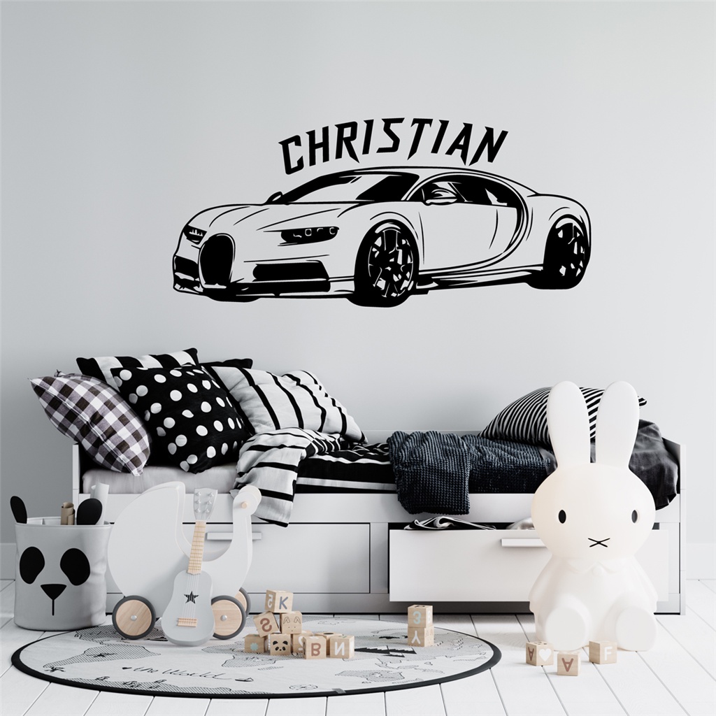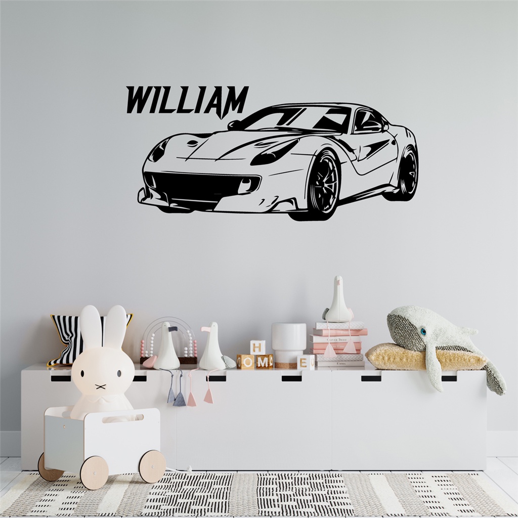Cool Sports Car Custom Name Vinyl Wall Sticker For Kids Rooms Decal Car Stickers For Boys Room Decoration Wallpaper