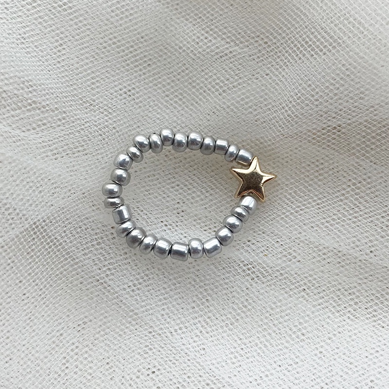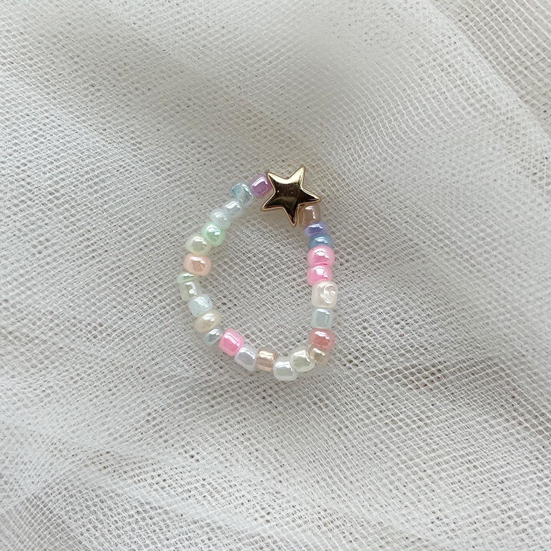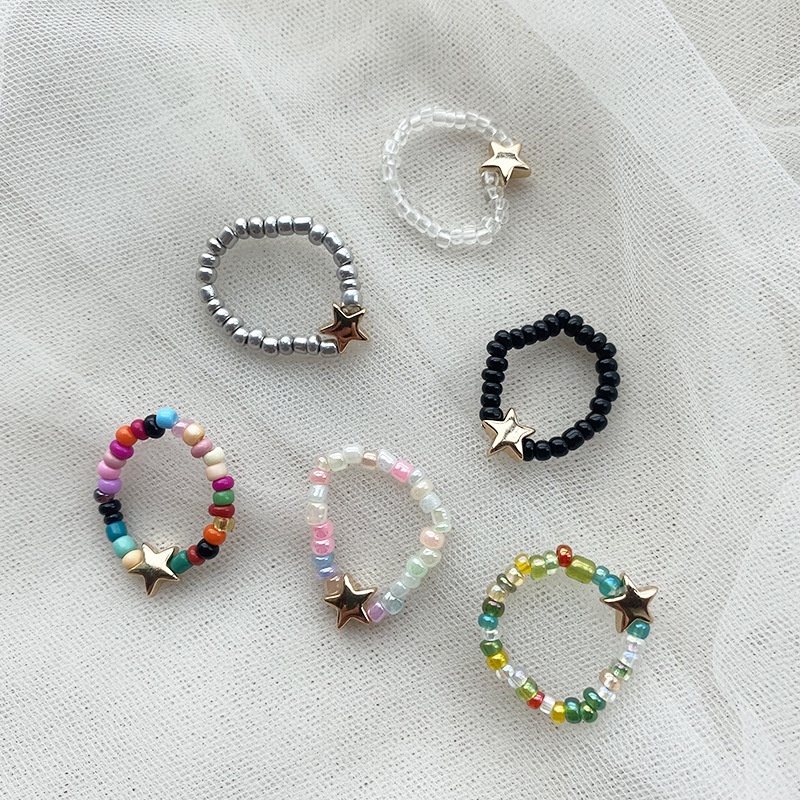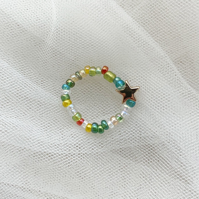 Cool Starfish Elastic Ring Female Summer Colorful Rice Beads Star Ring