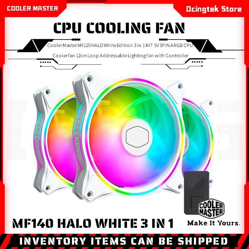 Cooler Master MF120 HALO White Edition 3in1 KIT 5V 3PIN ARGB CPU Cooling fan 12cm Addressable Light Fan with Controller