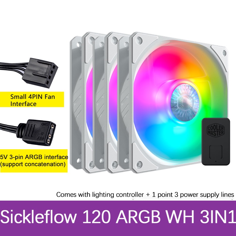 Cooler Master Sickleflow 120 CPU Cooler 120mm Fan ARGB/RGB/Monochrome/Black/White Case Cooling 5V 3PIN Intelligent Temperature Control 4PIN PWM Fan