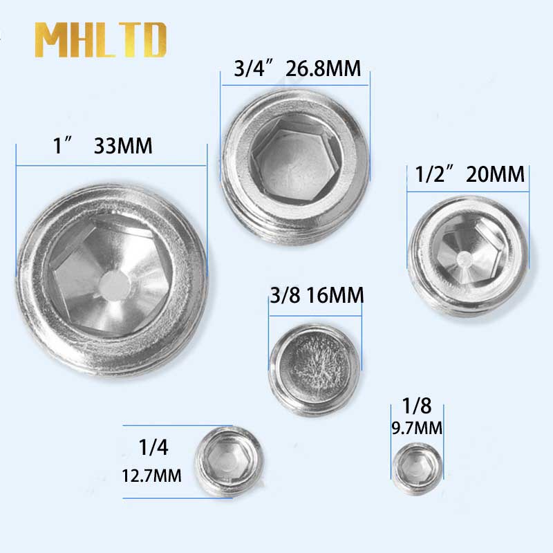 Copper Male Thread Brass Pipe Hex Head End Cap Plug Fitting Coupler 1/8" 1/4" 3/8" 1/2" 3/4" Connector Adapter Hexagon Socket Plugs