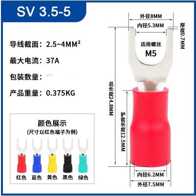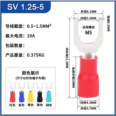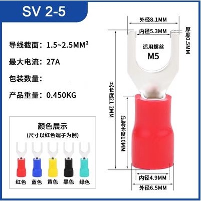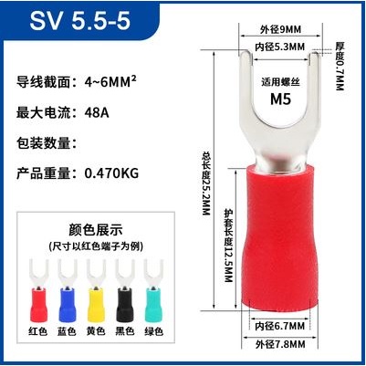 Copper lug fork type Sv1.25/2/3.5/5.5 pre insulated terminal Y-shaped lug U-shaped cold pressed End.