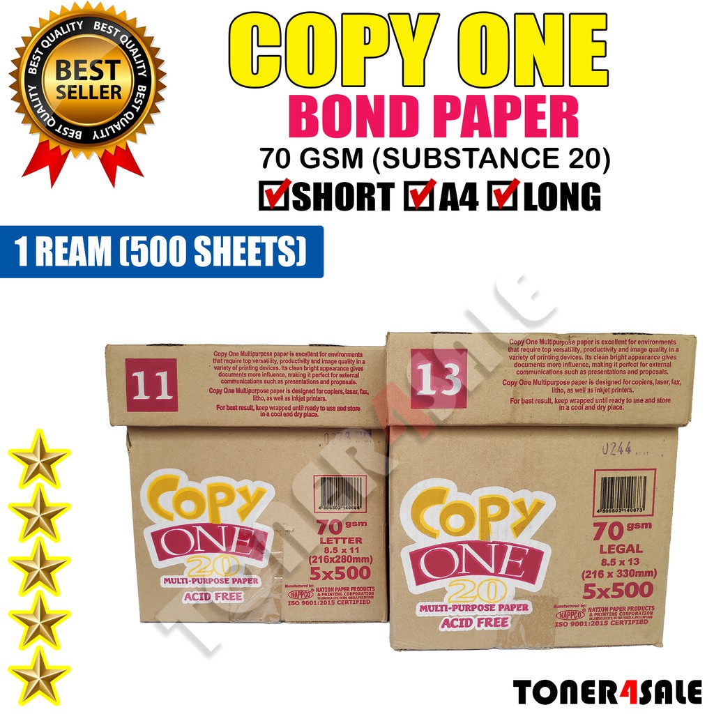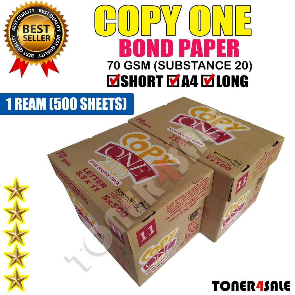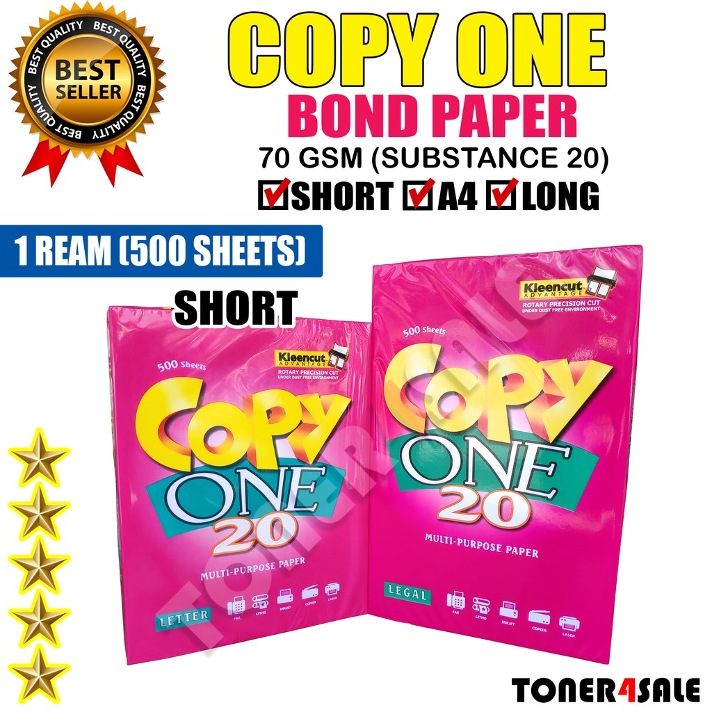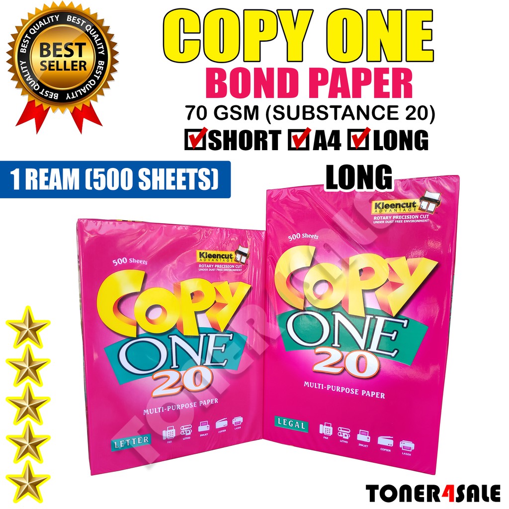 Copy One Bond Paper Sub20 70gsm (1 Ream / 500 Sheets)
