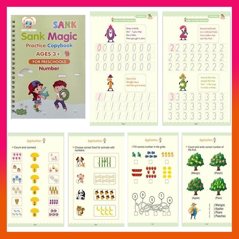 Copy book Kid's English Learning Calligraphy Magic Writing Book Set Reusable Learning 4 Copy Books Sticker Workbooks To Improve Skills
