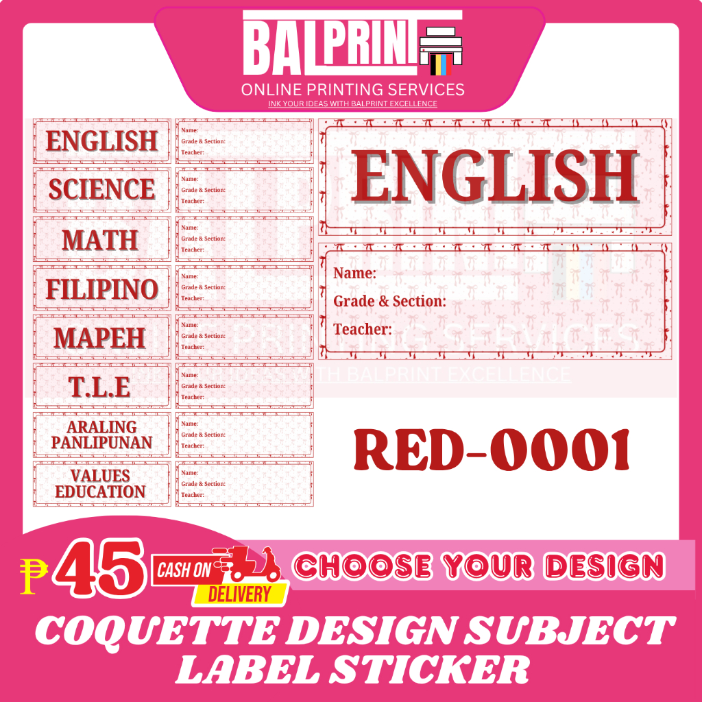 Coquette Subject Sticker - Subject Stickers and Name Labels Stickers for Notebook and Books
