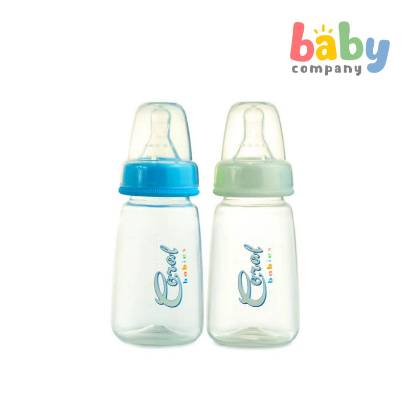 Coral Babies Regular Feeding Bottles with Anti-Colic Silicone Nipple - 4oz, Pack of 2