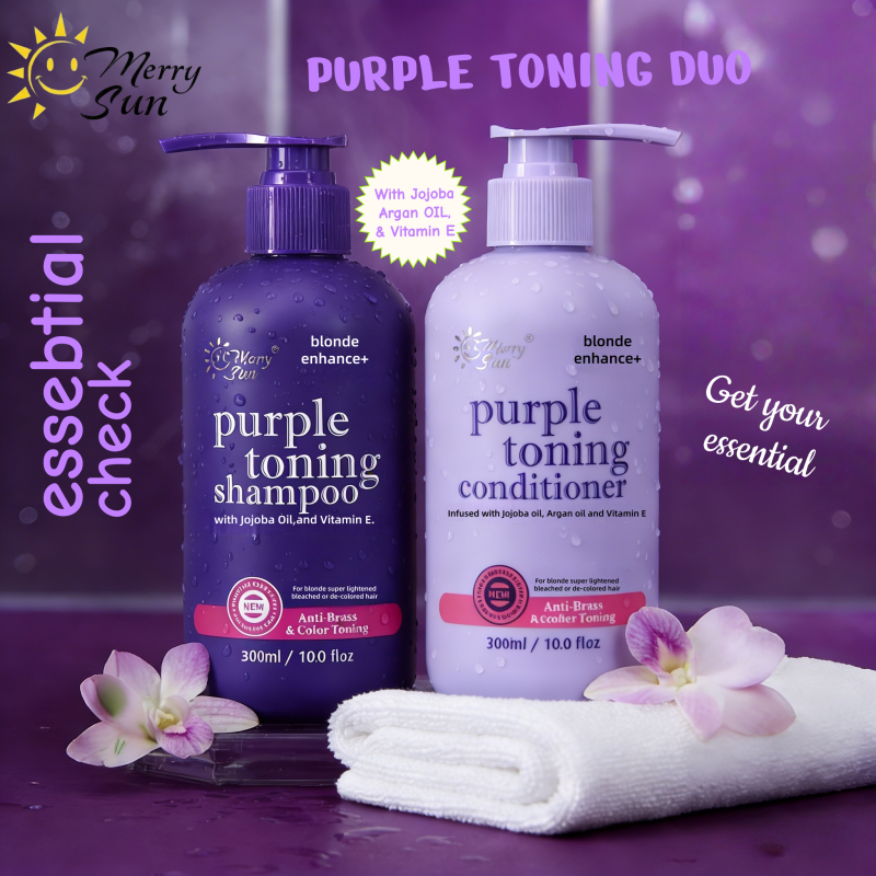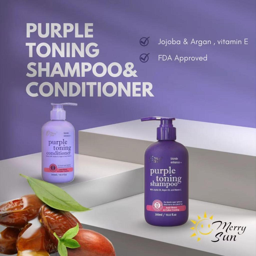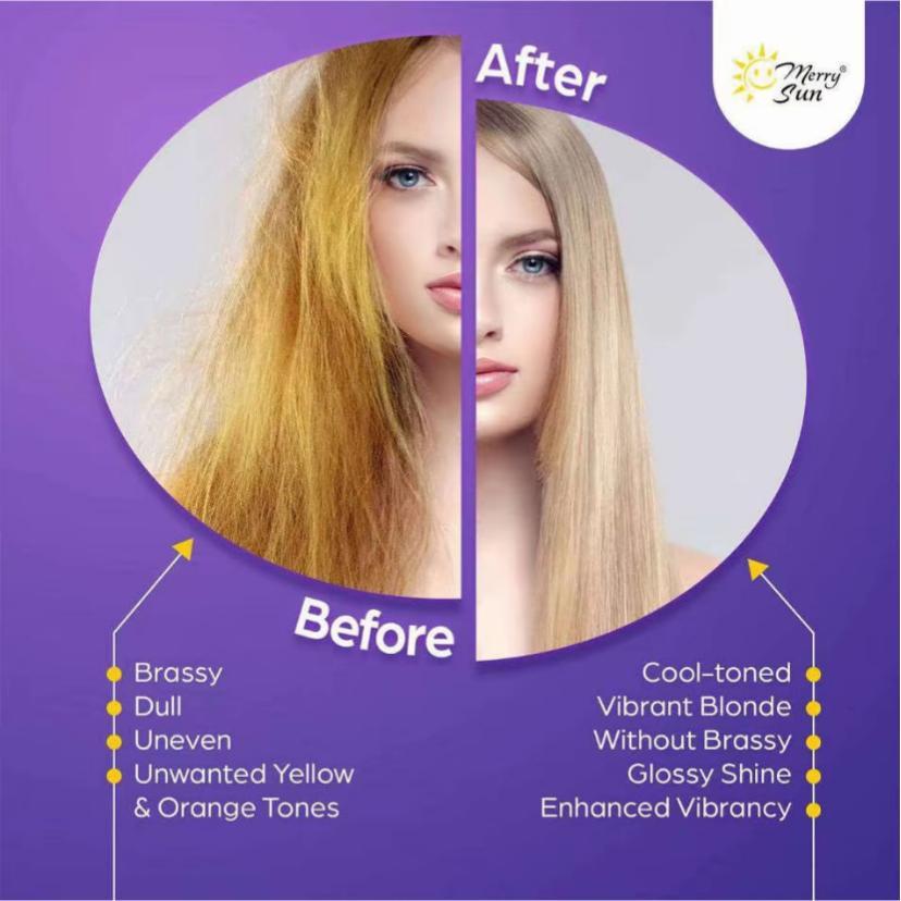 Professional MERRY SUN Purple Toning Set 300ml: Anti-Brass Repair & Shine (Argan Oil & Vit E)
