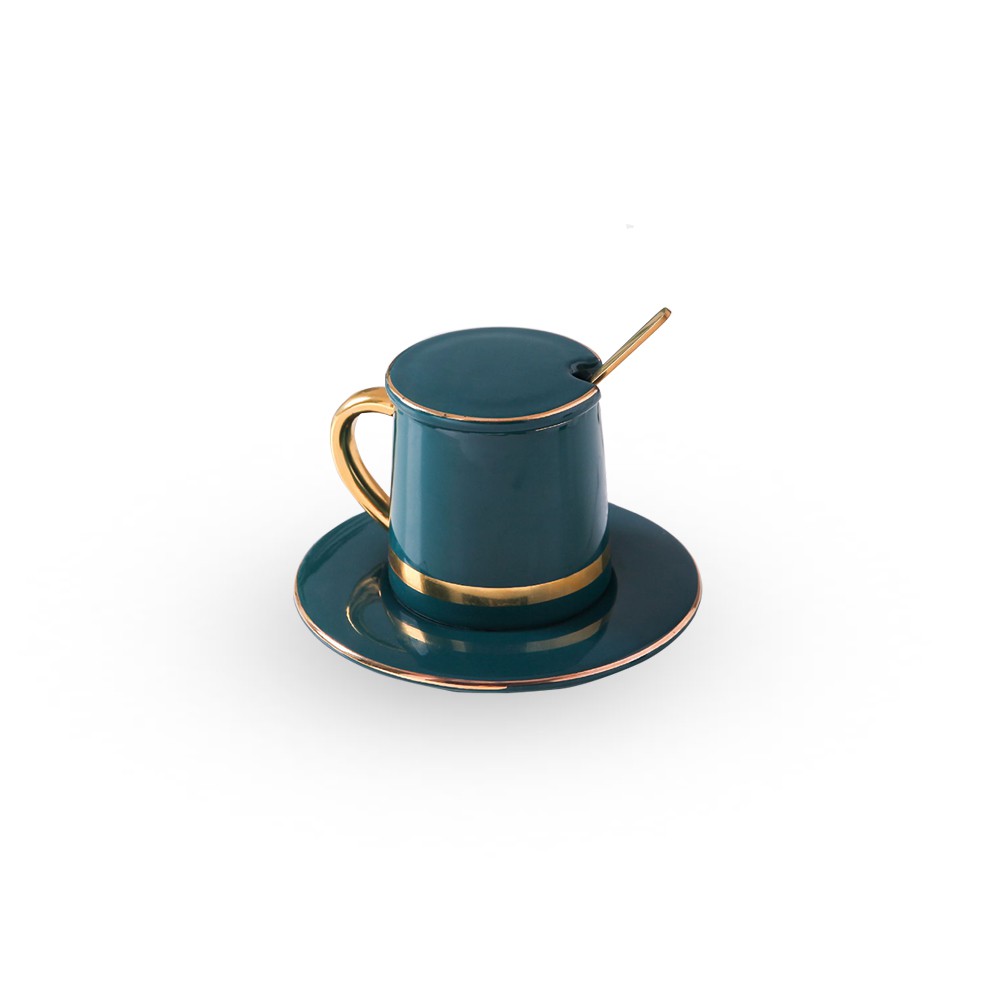 LOCAUPIN Luxurious Porcelain Mug with Gift Box Afternoon Drinking Tea Coffee Cup with Lid Spoon Set