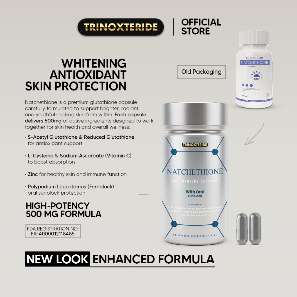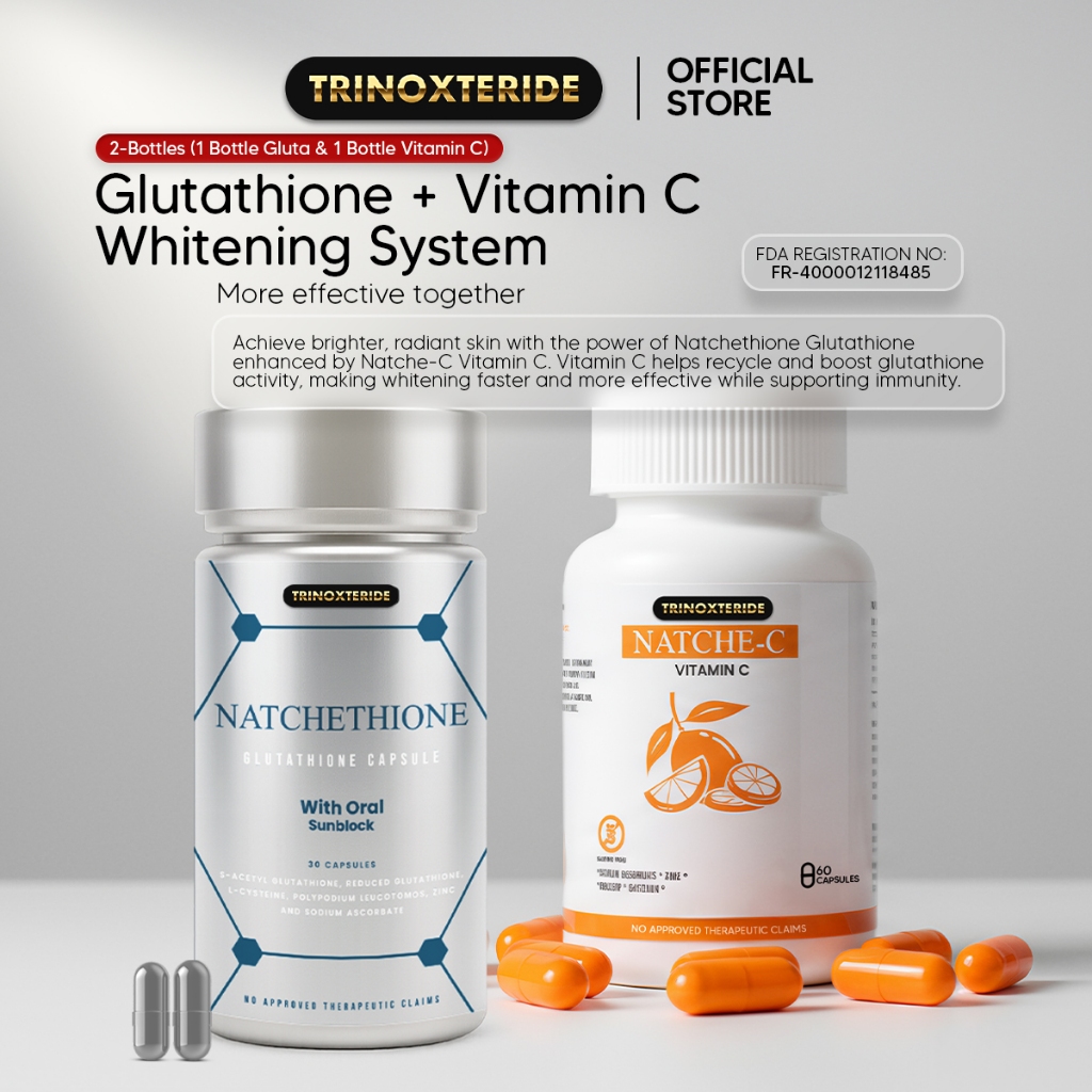 Trinoxteride Natchethione S-Acetyl Glutathione 500mg + Vitamin C Whitening System 2 Bottles