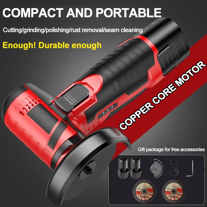 Cordless Angle Grinder 3 Inch 12V Brushless Grinder Industrial Angle Grinder Electric Cutting Tool