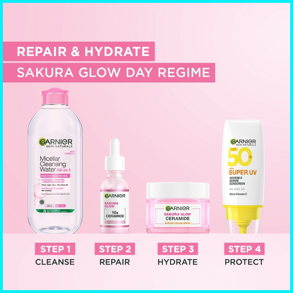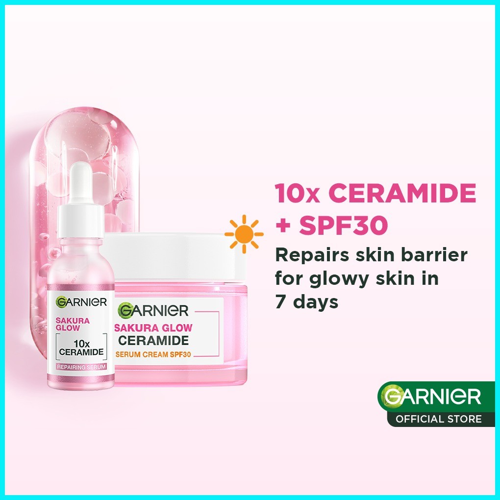 Garnier 10x Ceramide Sakura Glow Duo DAY Skincare Set: Serum (30ml) & Day Moisturizer SPF30 (50ml)