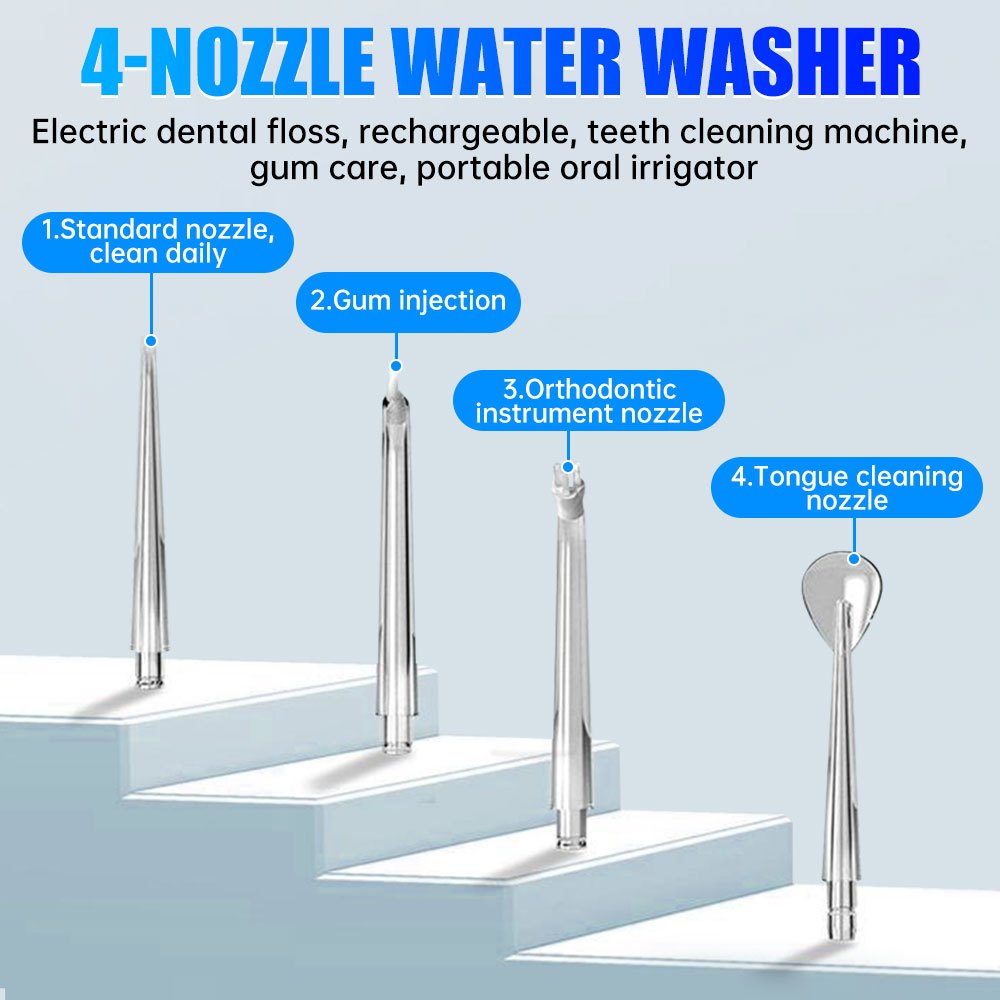 Electric Tooth Cleaner 4 Heads Rechargeable Oral Care Cleaning Kit Portable Oral Irrigator 3 Modes