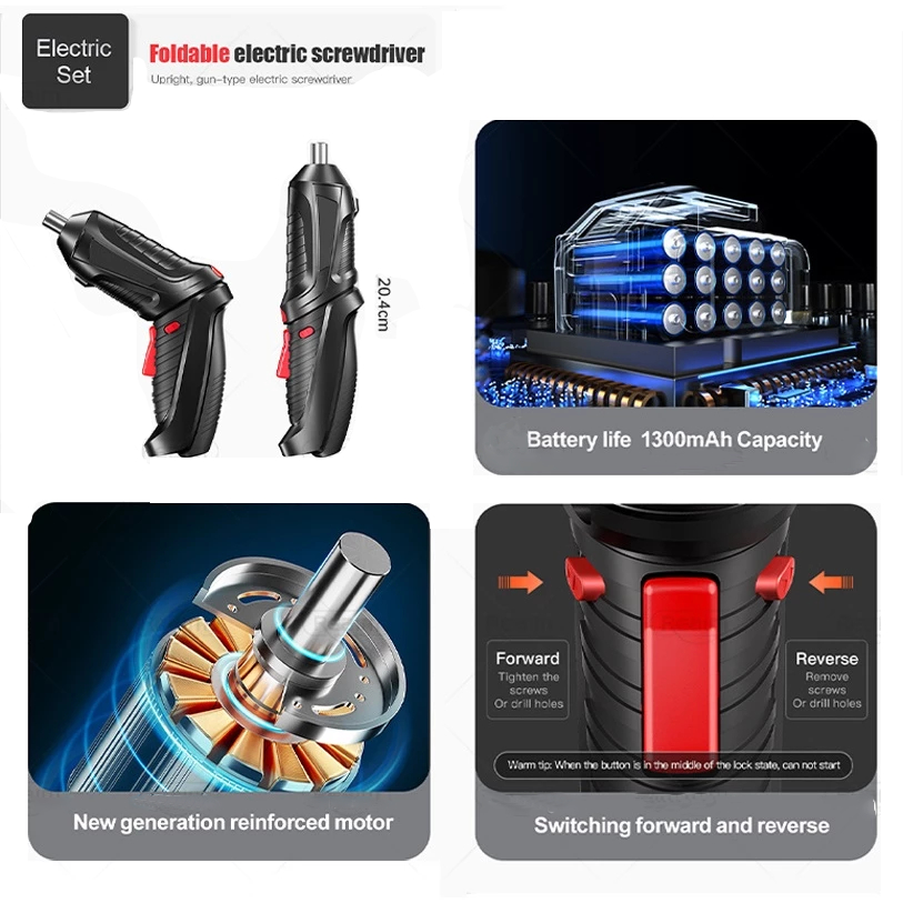 Cordless Screwdriver 48PCS Set DIY Electric Barena Drill Set Rechargeable Portable Foldable