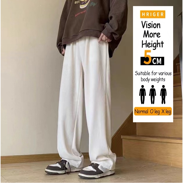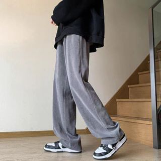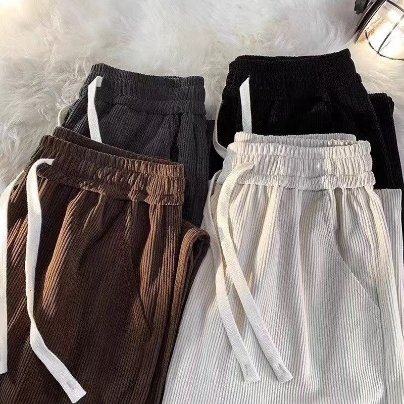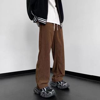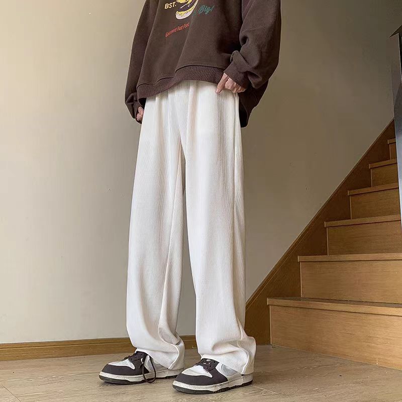 Corduroy Pants For Men Korean Khaki Baggy Straight Cut Slacks Slocks Trouser White trend Pants Man