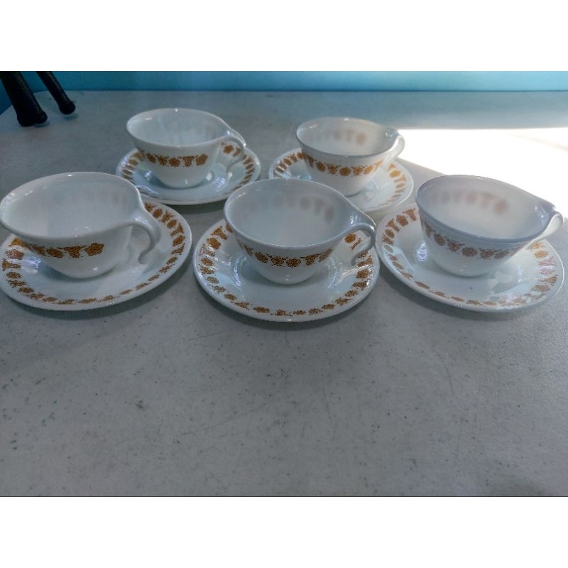 Corelle cups and saucer set butterfly gold