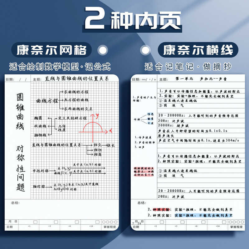Cornell Notebook B5 High Aesthetic 5R Efficient Memory Method Grid Horizontal Line College Student S