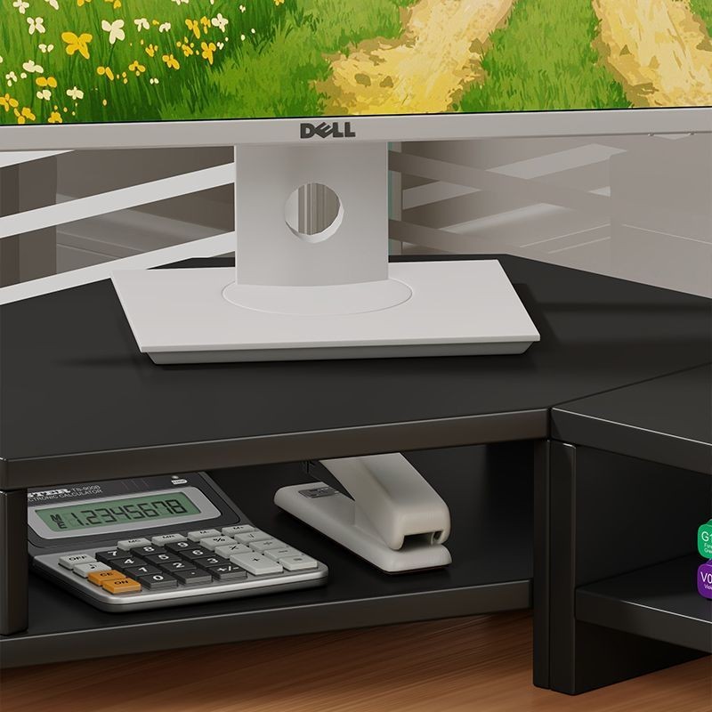 Corner Computer Elevated Monitor Stand Desk Triangle Storage Rack With Hole Board Desktop Storage Shelf