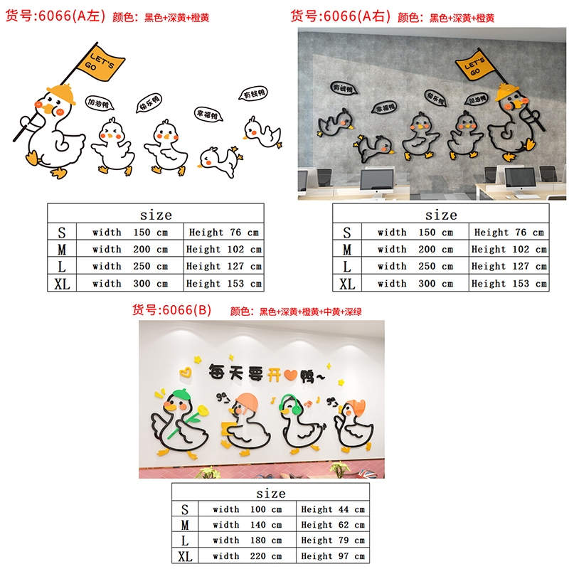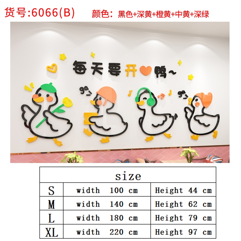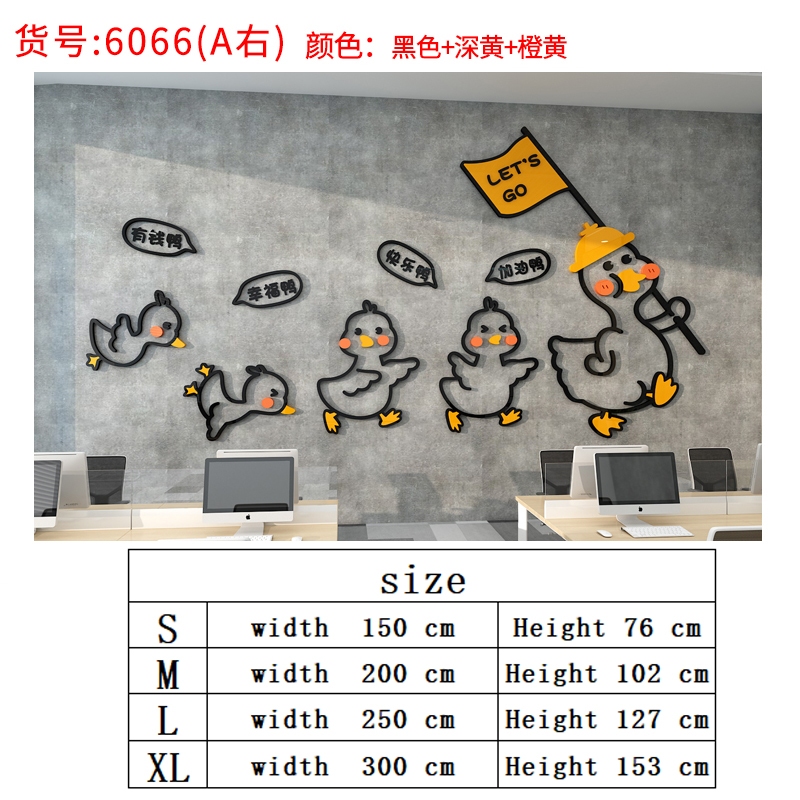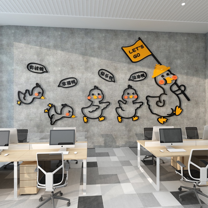 Corporate Inspirational Cartoon Duck Wall Sticker Acrylic 3D Self-Adhesive Wallpaper Office Decoration Hotel Layout Stickers