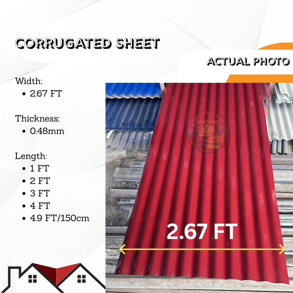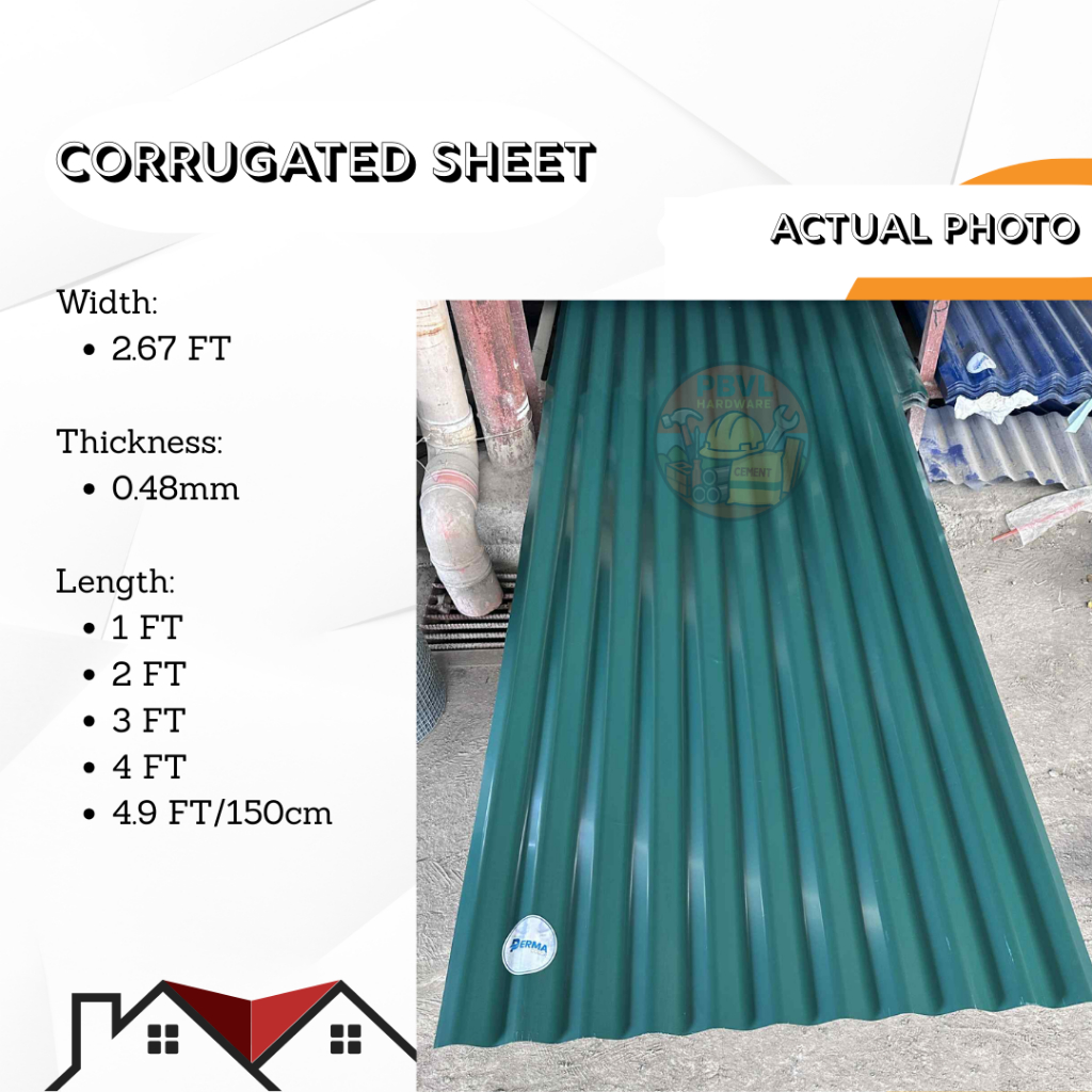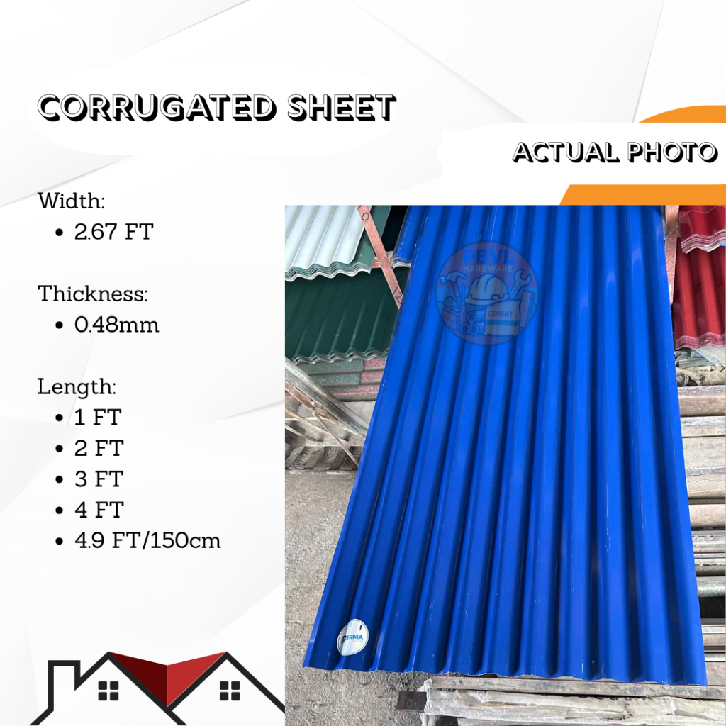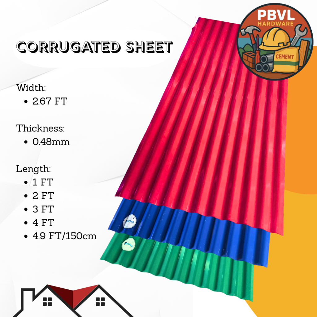 Corrugated Sheet Gauge 24 APO Roofing Sold per 1-4 Feet and 150 cm Blue Red Green