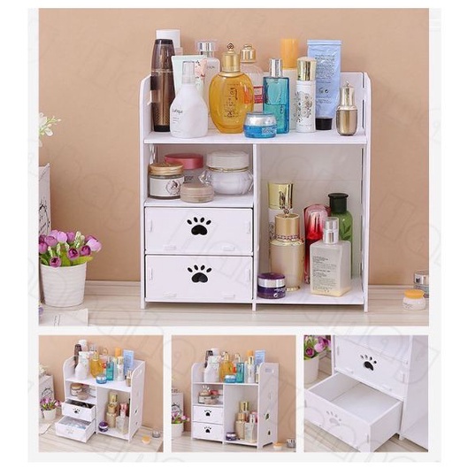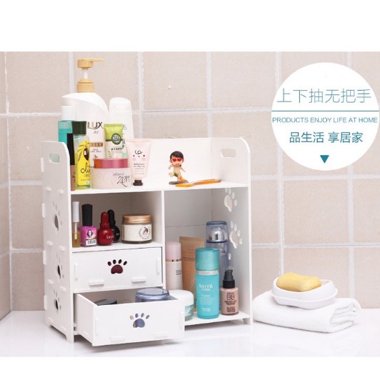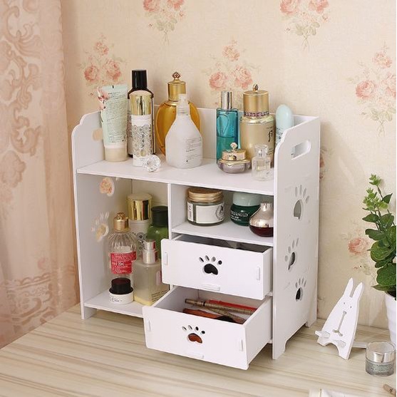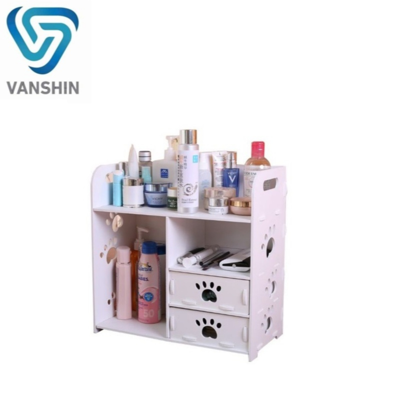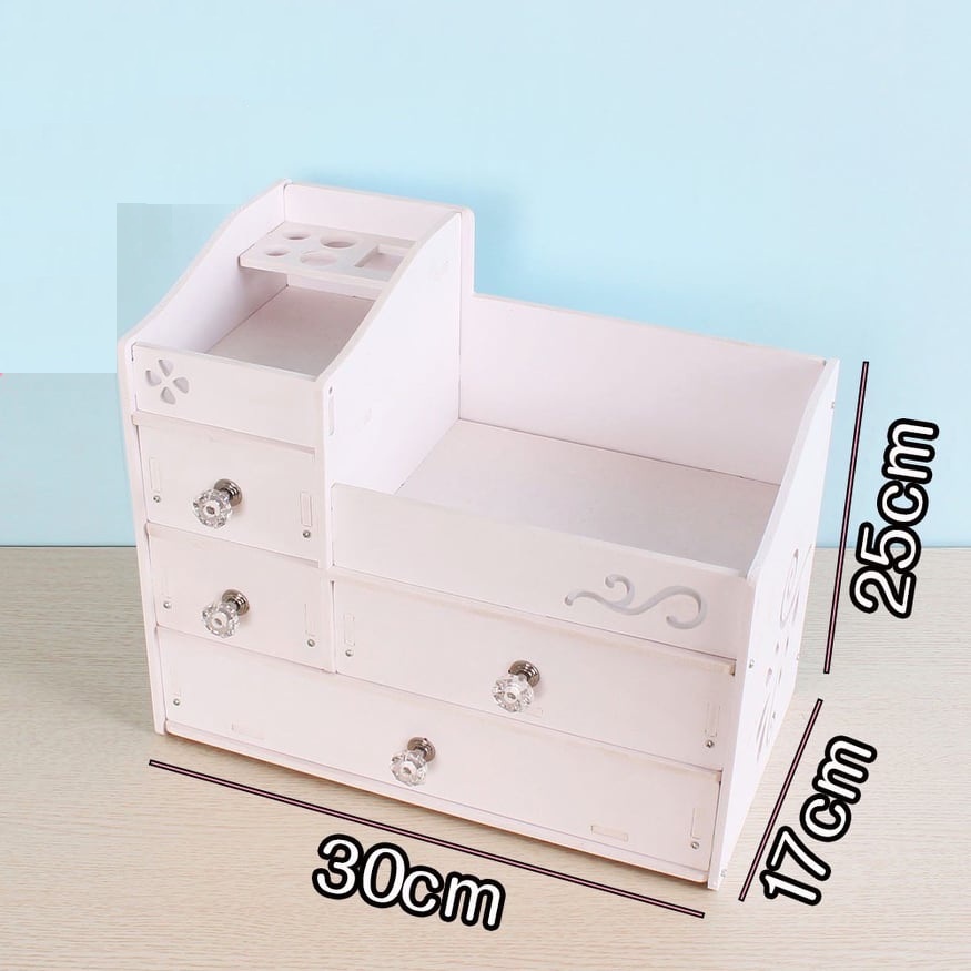 Cosmetic DIY Wooden Storage Box Desktop Organizer Plastic Set