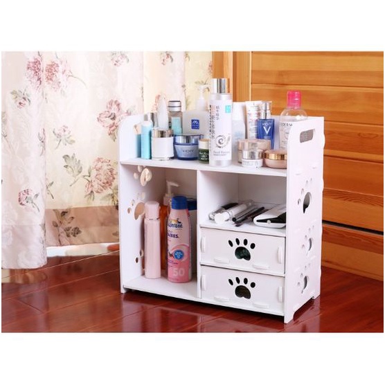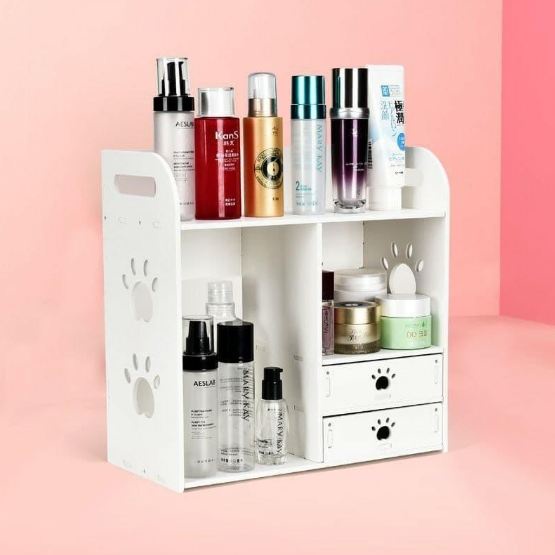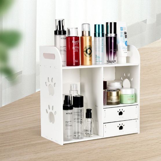 Cosmetic DIY Wooden Storage Table Desk Box Desktop Jewelry Organizer Set