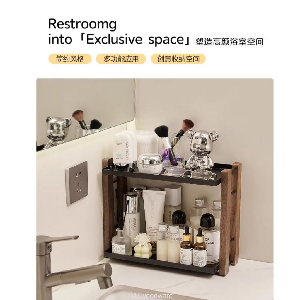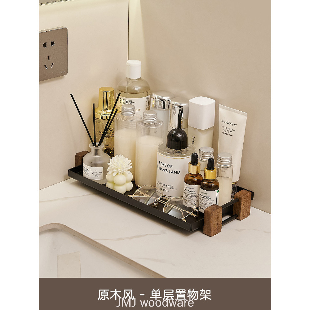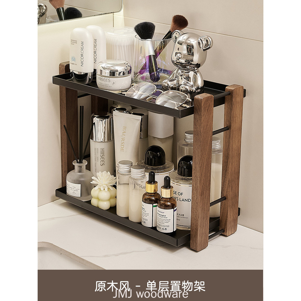 Cosmetic Storage Rack Toilet Washbasin Storage Rack Dressing Skin Care Product Storage Desktop Storage Rack Solid Wood Storage Rack Walnut
