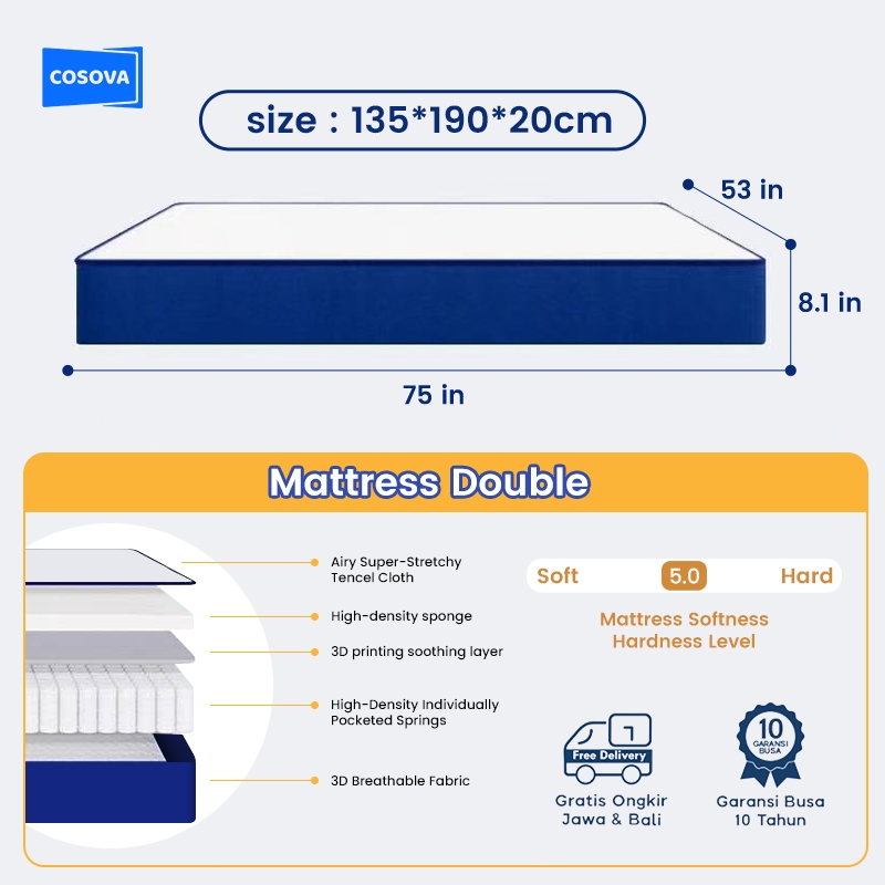 COSOVA 8 inch Memory Foam lndependent Spring Mattress ( Single / Double / Queen / Famly )