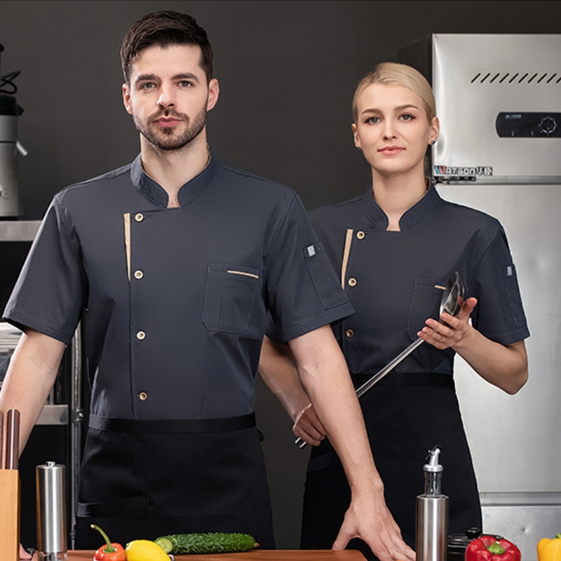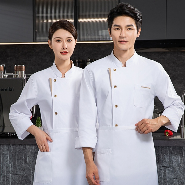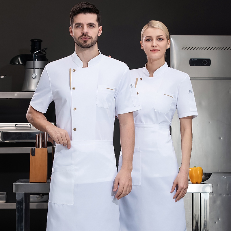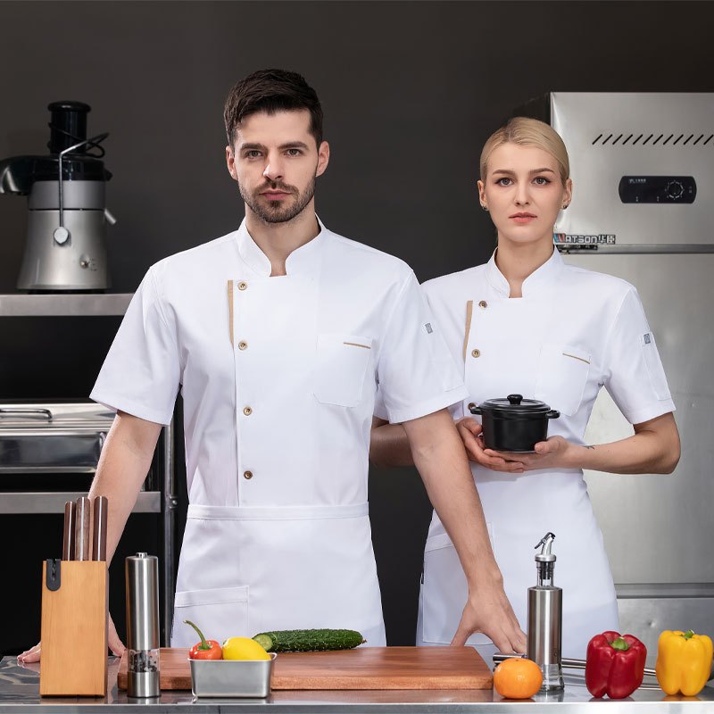 Cotton Chef Uniform for Men/Women Breathable French Restaurant Uniform Food Service Top Uniform