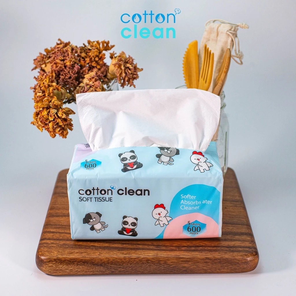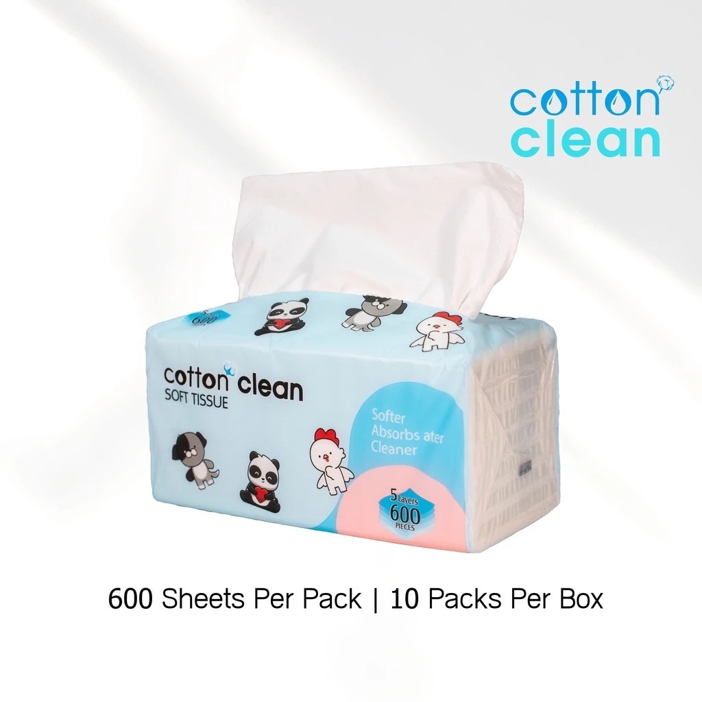 Cotton Clean Soft Tissue Paper 5-Ply | 600 Sheets | Ultra Soft & Strong Cleaning Paper Towels