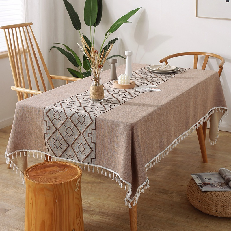 Cotton Linen Water Wave Jacquard Tablecloth Art Table Cloth Rectangular Household Table cloth