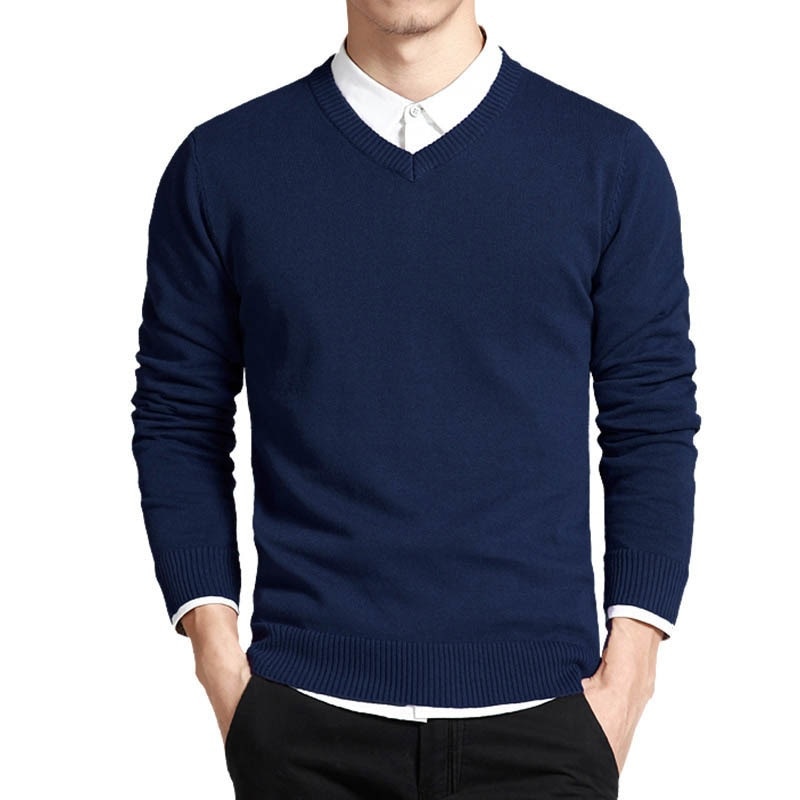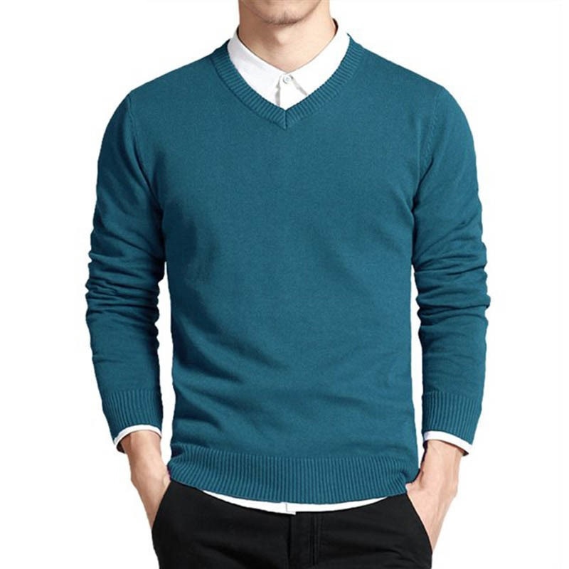Cotton Sweater Men Long Sleeve Pullovers Outwear Man V Neck Male Sweaters Fashion Brand Loose Fit Knitting Clothing Korean Style