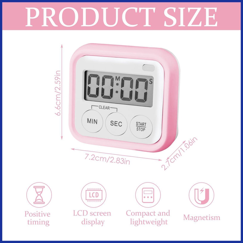 Countdown Timer Kitchen Timer & Stopwatch Backing Stand Quick-Set Buttons Volume Adjustable Beeping Magnetic LED tongph