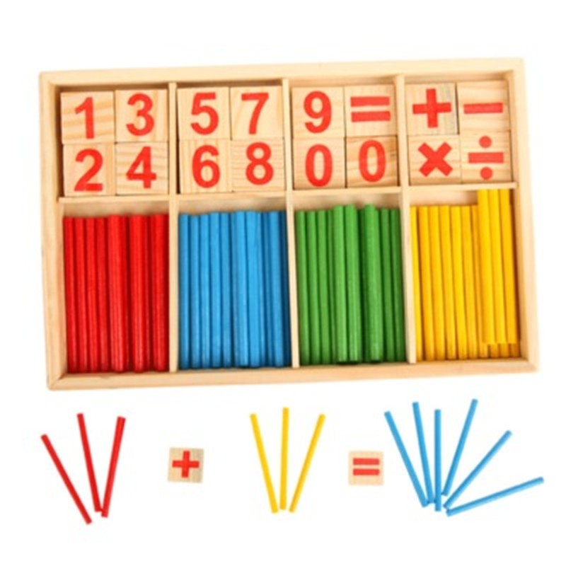 Counting Sticks Montessori Math Sticks, Wooden Colorful Calculation Toy Manipulatives with Box