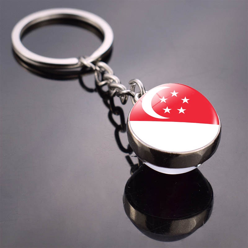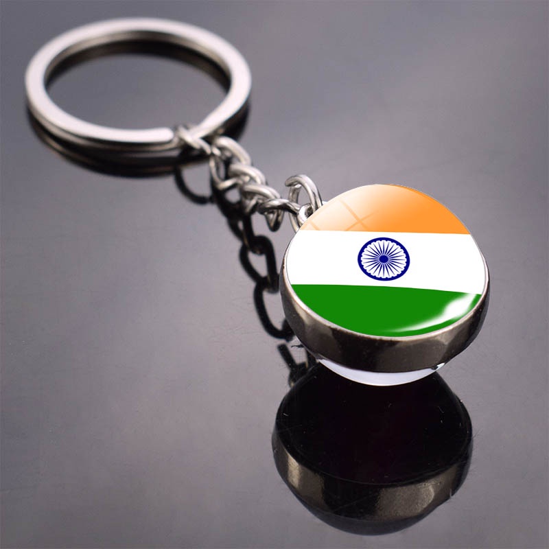 Country Flag Key Chain China Russia India Afghanistan Egypt Singapore Nepal National Flag Double Side Glass Ball Keychain
