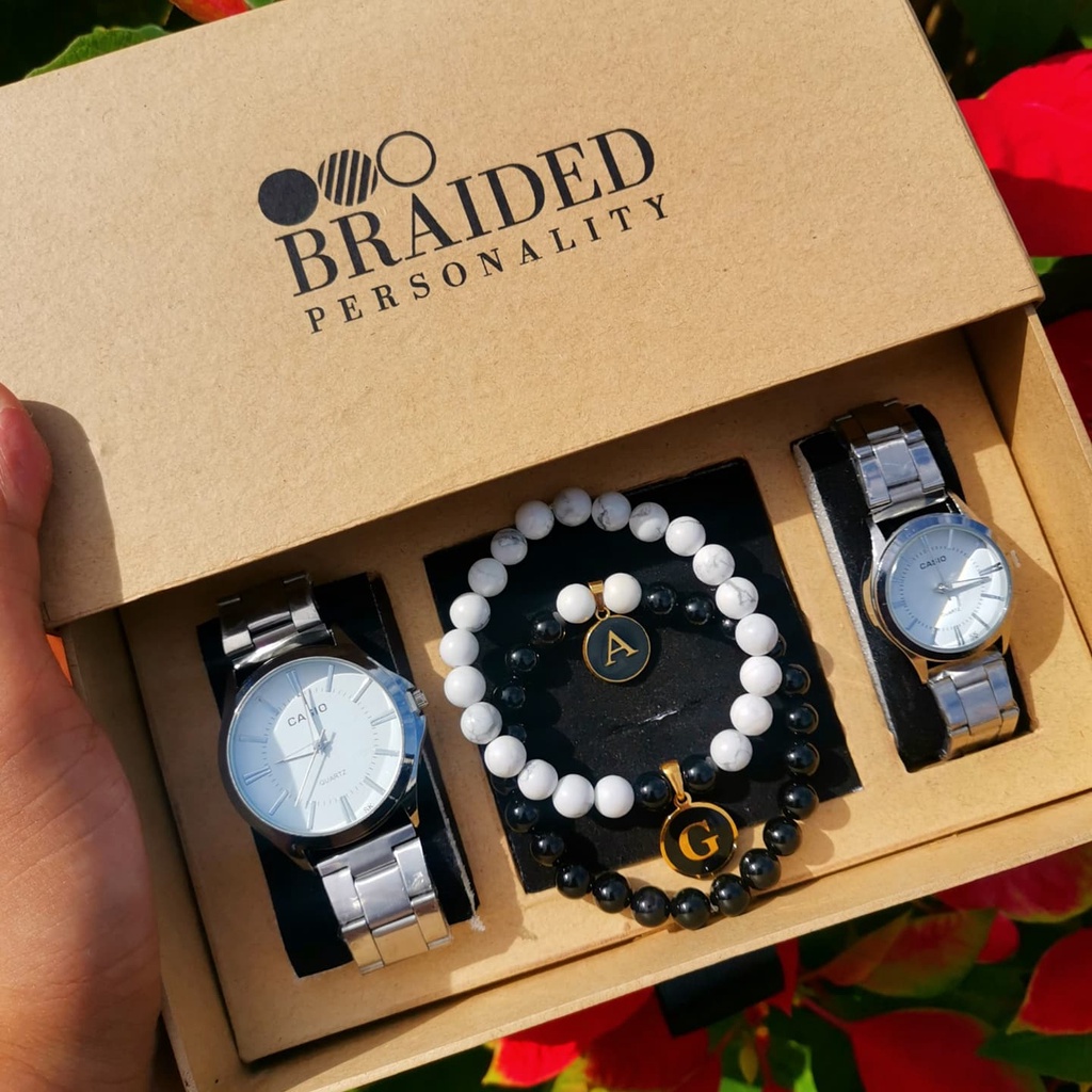 Couple Watch and Couple Bracelet with Letter Pendant Gift Set