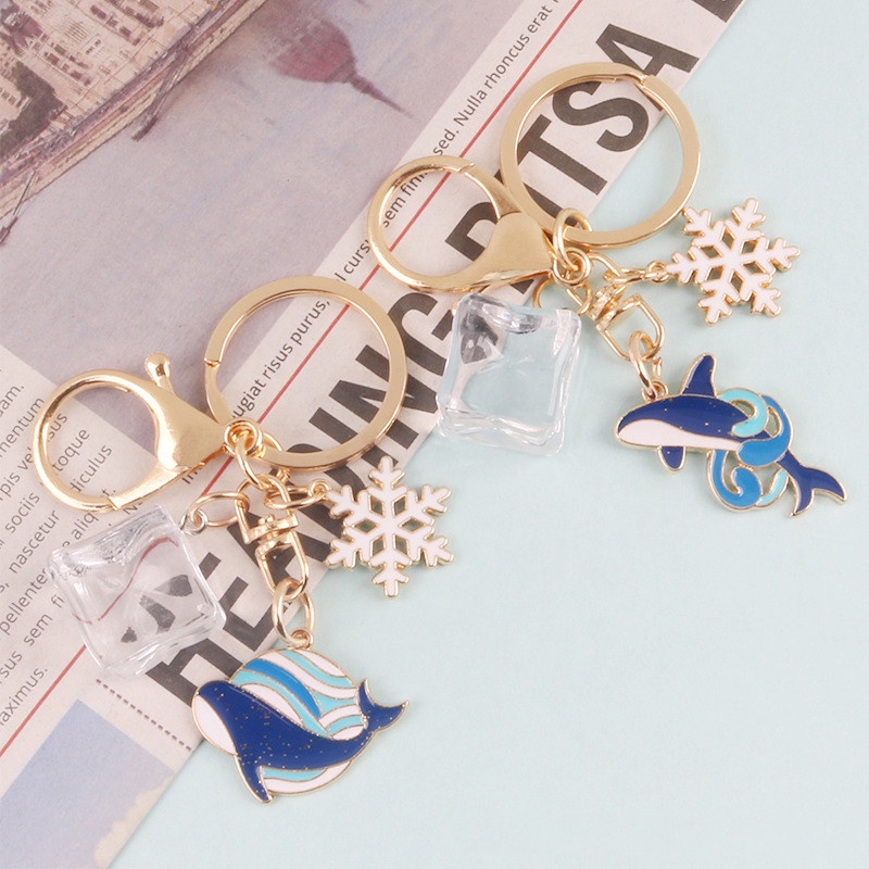 Couple Whale Keychain Cute Keyring Cartoon Shark Plush Bag Pendant Blue Whale Ice Cube Ornament