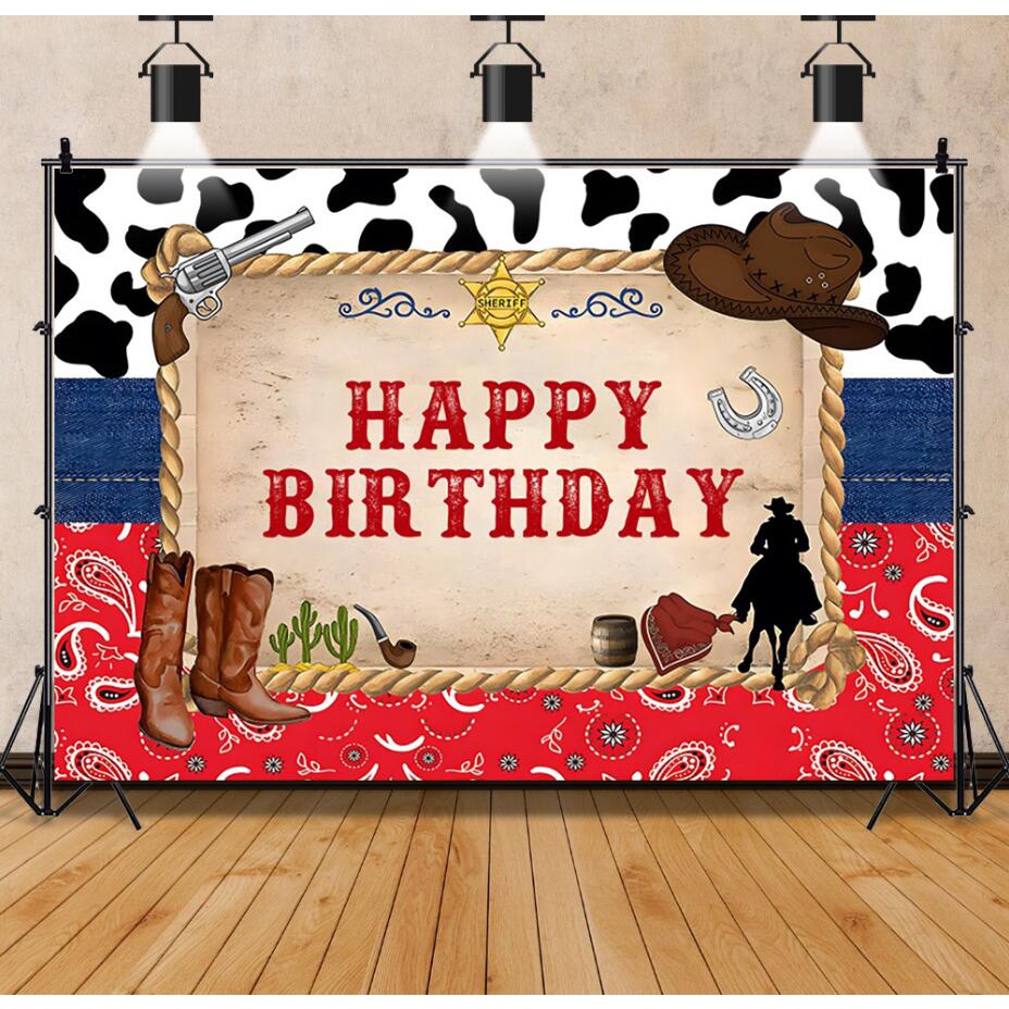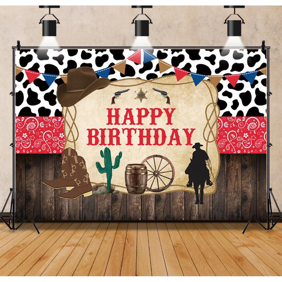 Cowboy Wild West Birthday Backdrop Western Cowboy Party Decoration Photography Background Happy Birthday Party Decoration Supplies 150*100cm