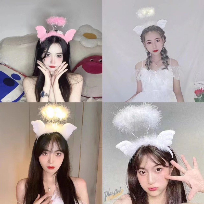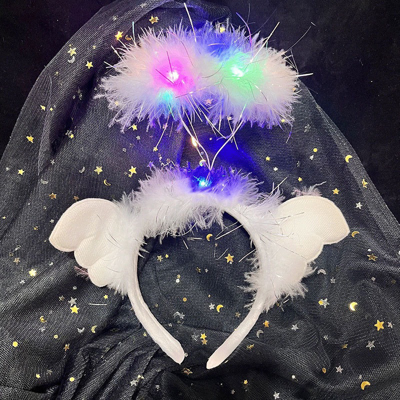 Cozy Feather Angel Halo Headband Light up Hair Band LED Hair Hoop Celebrate New Year