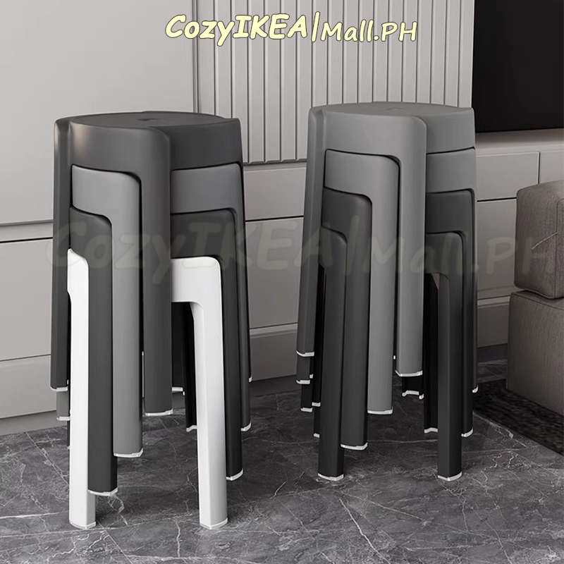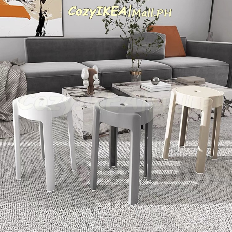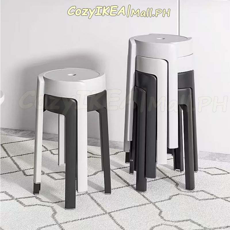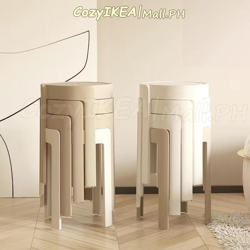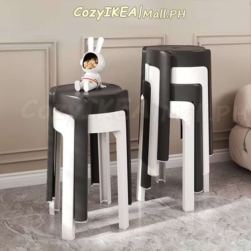 CozyIKEA Thick Plastic Stool Nordic Chair Stackable Chair High Round Stool Home Dining Chair