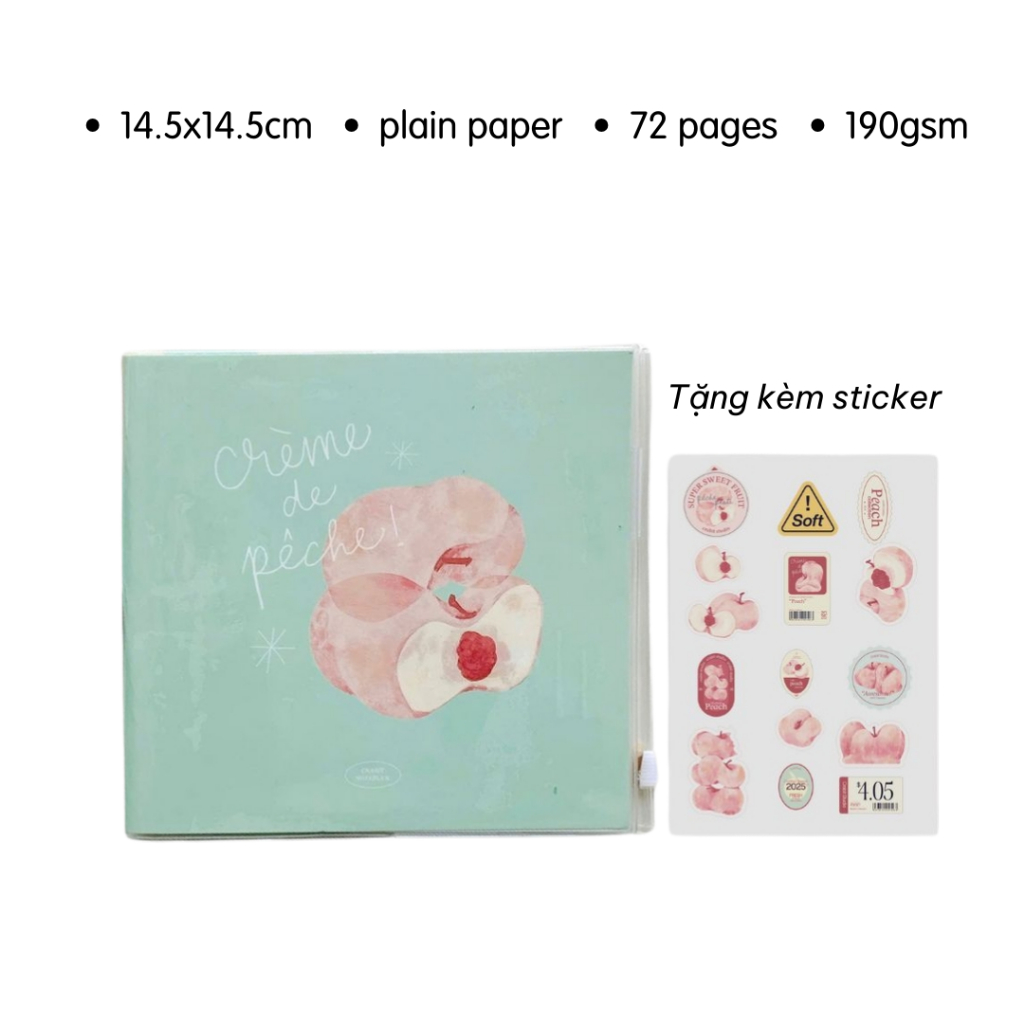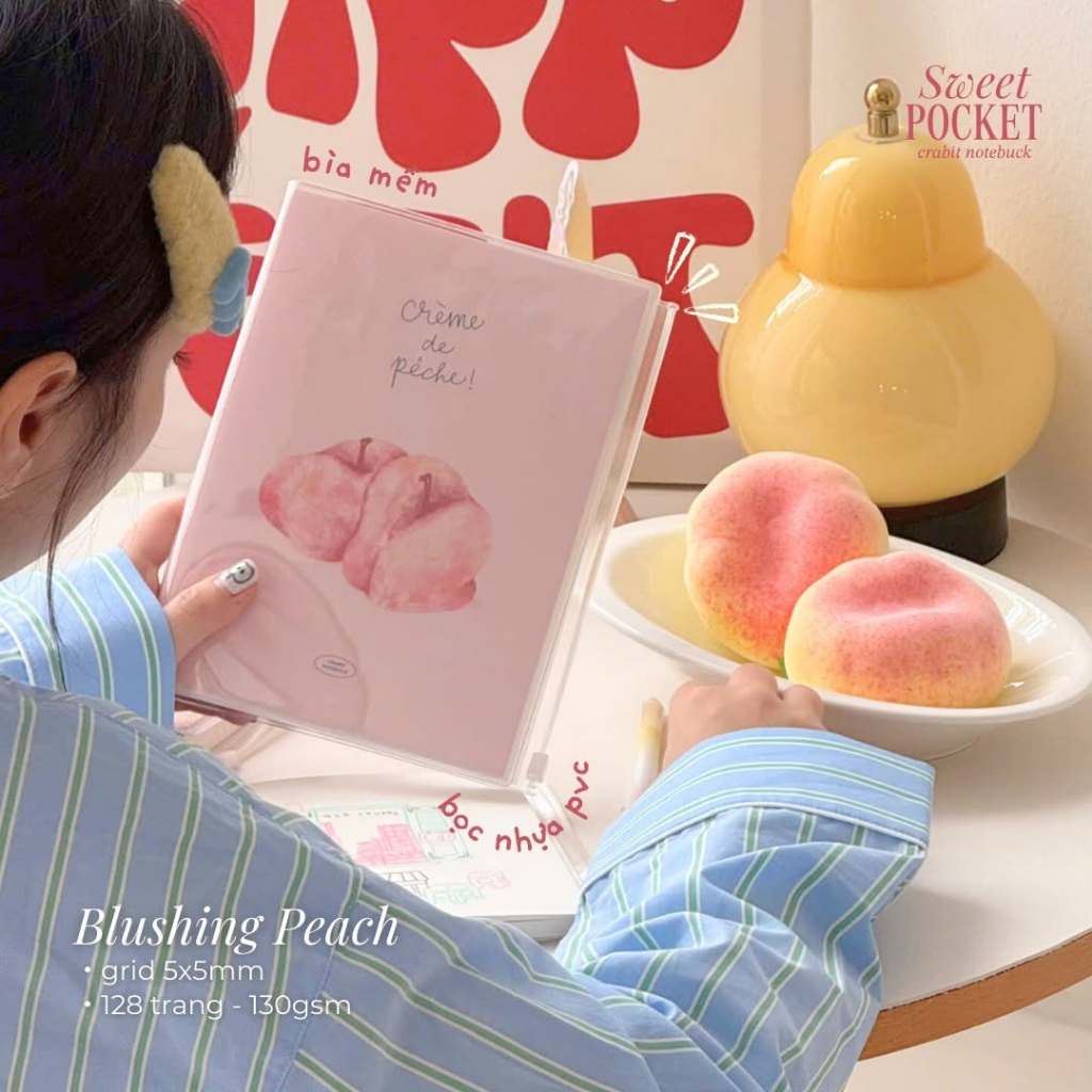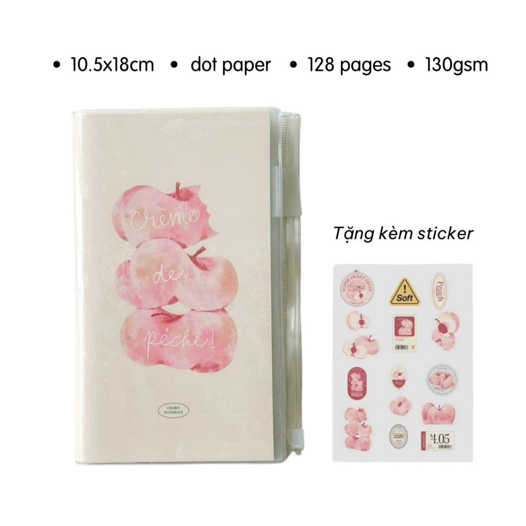 CRABIT Peach Pocket notebook A5 A6 size Square dot grid sketch 130/190gsm with free sticker