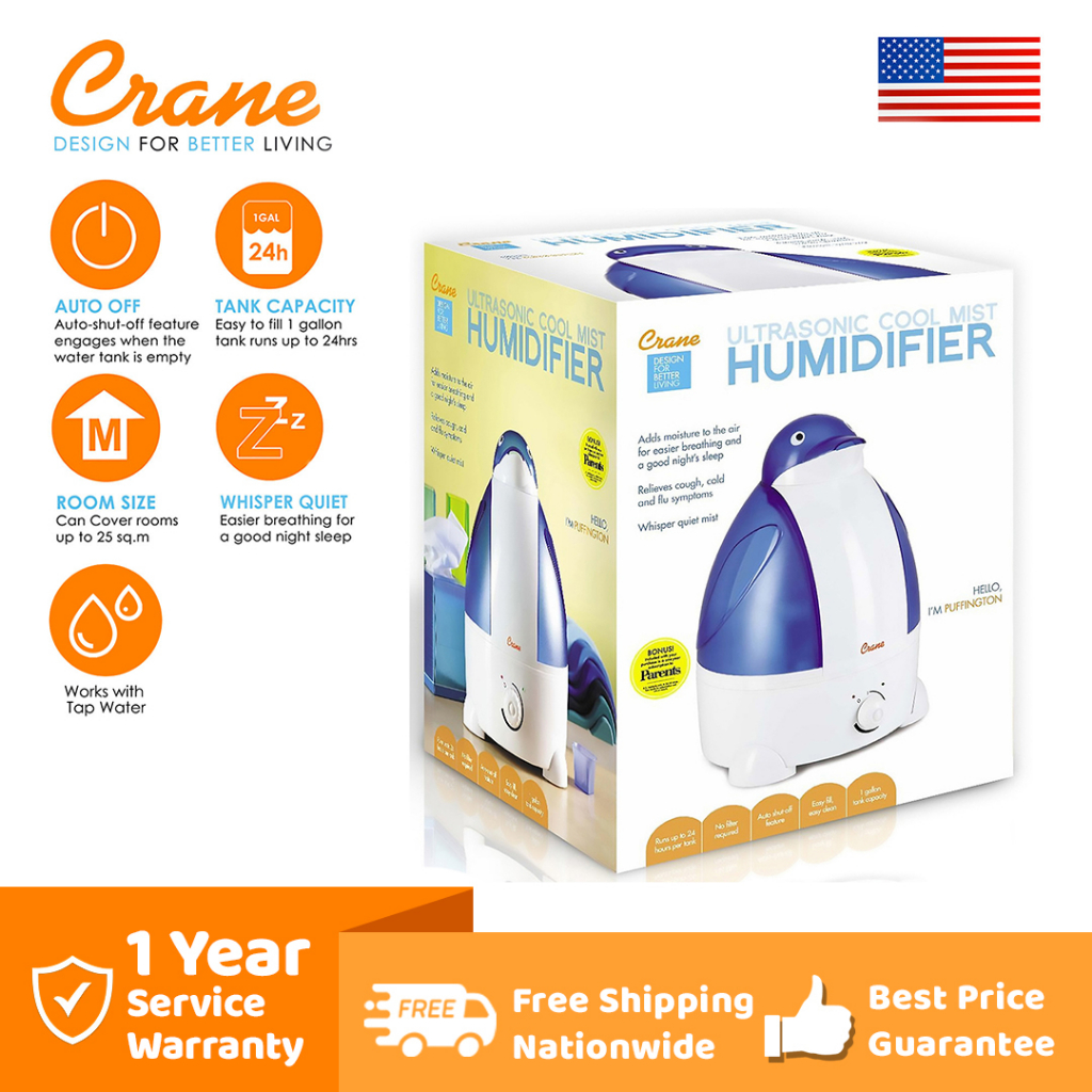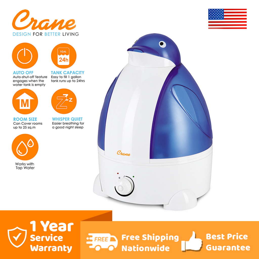 Crane Adorable Cool Mist Humidifier Puffington Penguin for Cough, Colds, Asthma, Snoring, SoreThroat