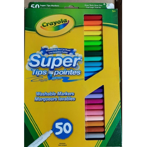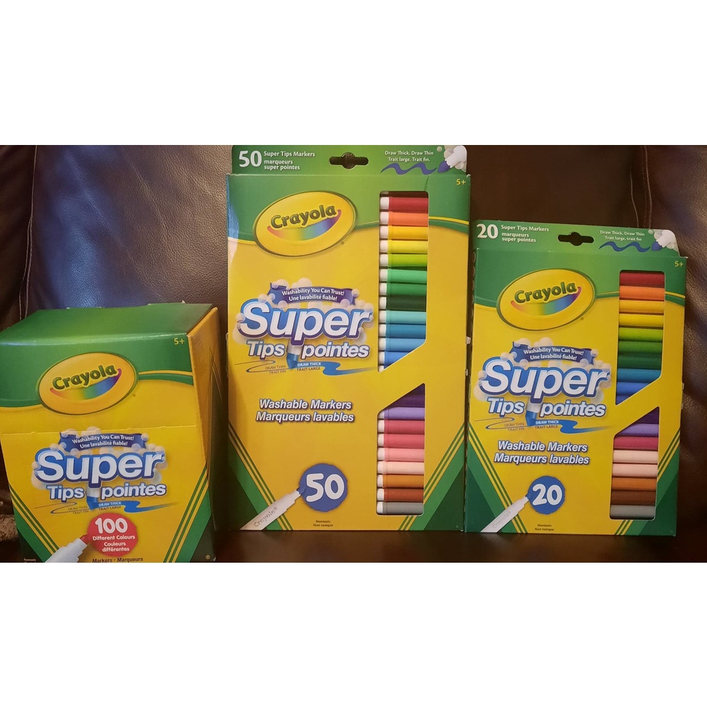 Crayola Super Tips Washable Markers 20, 50 and 100 Pack, 65 Mega with PIP Sque
