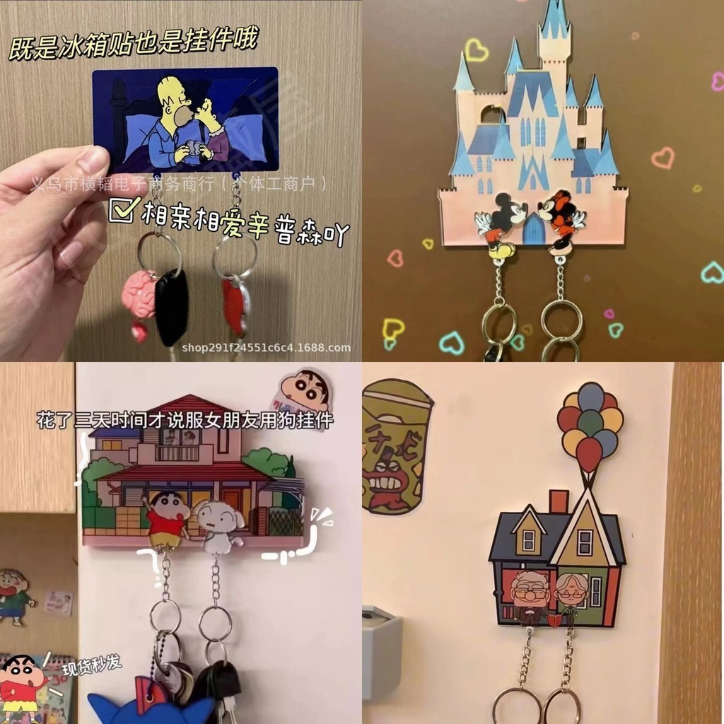 Crayon Shin-chan Simpson Keychain Mickey Mouse Up Refrigerator Sticker Creative Cute Couple Cartoon Pendant