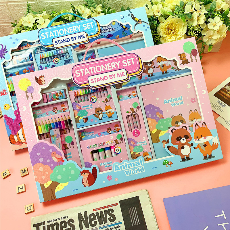 Crayon Stationery Gift Box Colored Pencils and Watercolor Pens Kids Gift Set Birthday Gift