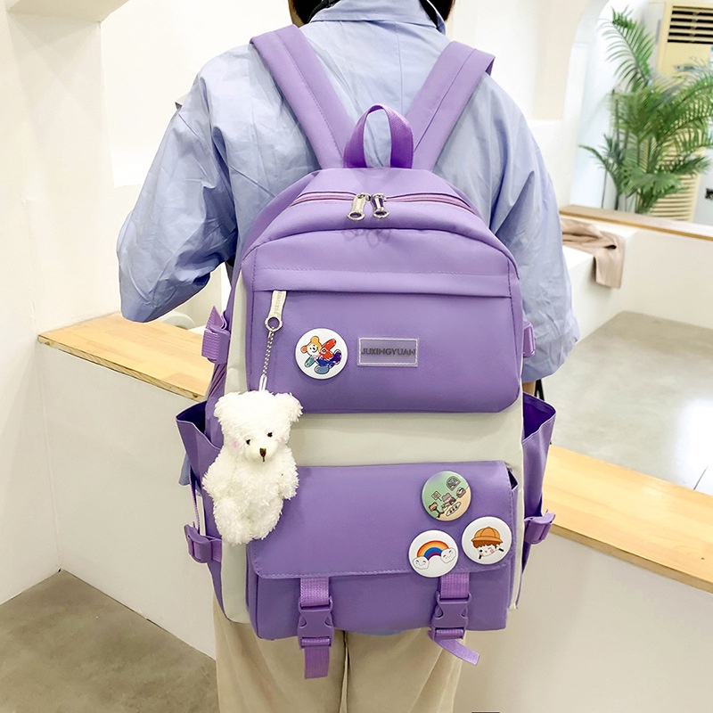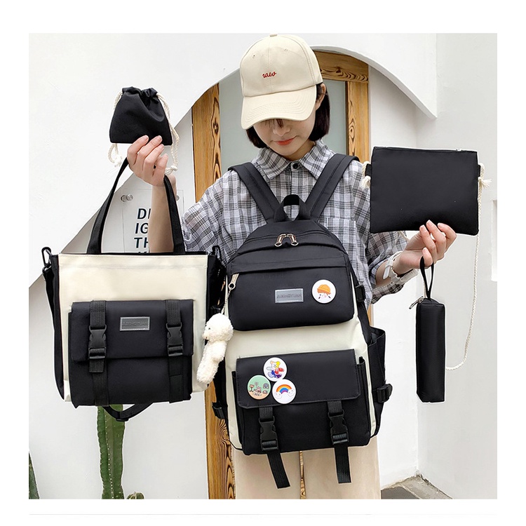 Crazy Bag Five-piece color matching schoolbag 2022 new girls' backpacks trendy high school student girls' backpacks Japanese style