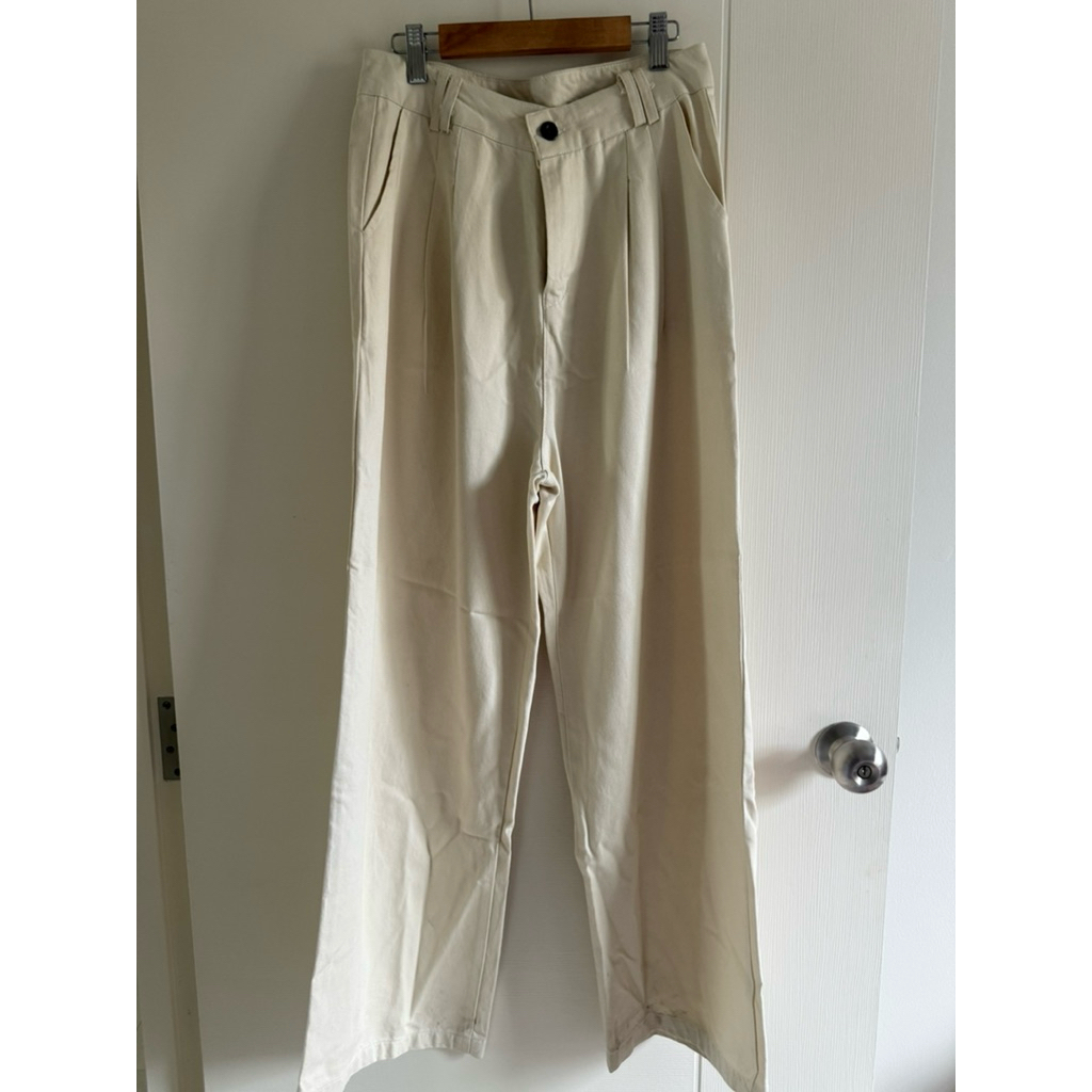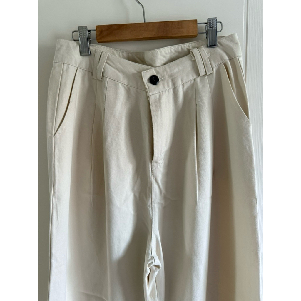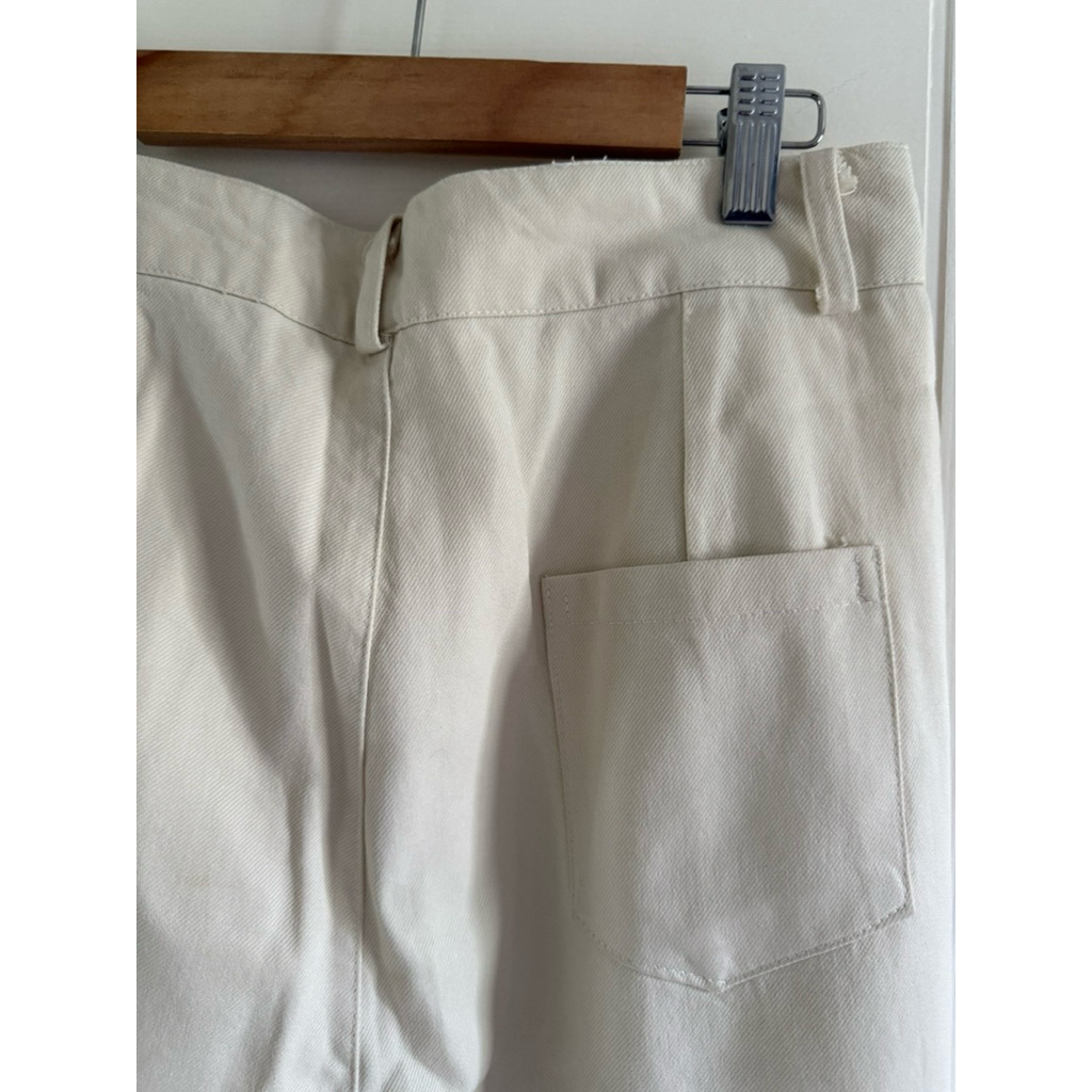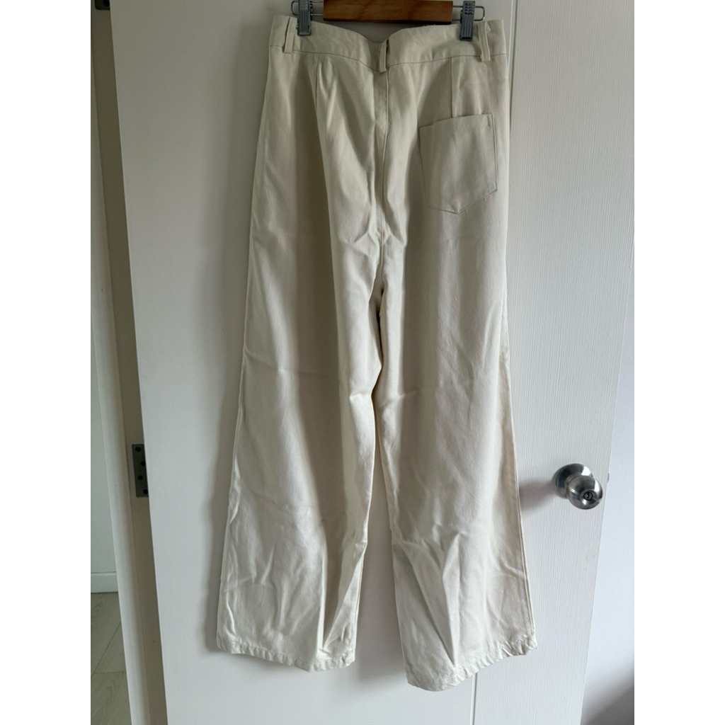 Jeans Mixed Fabric Pants Cream Color Cylindrical Shape