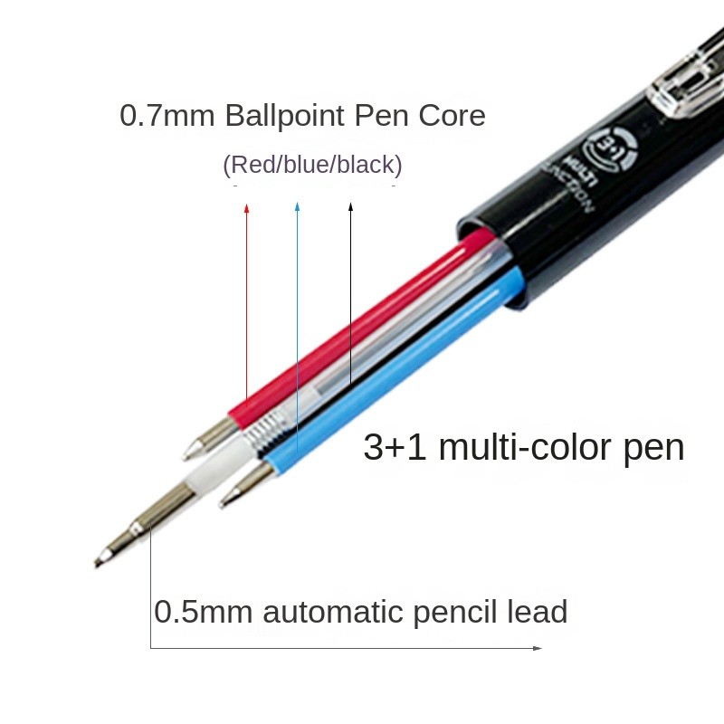 Creative 3-Color Ballpoint Pen 4in1 Press Multicolor Pen & Pencil Student Stationery WJ655