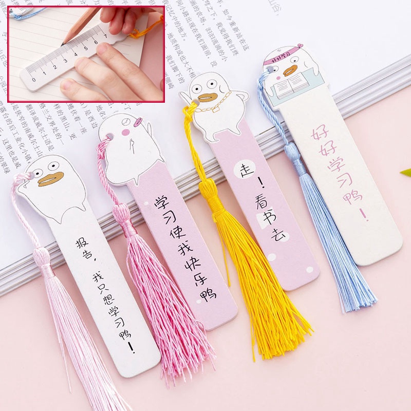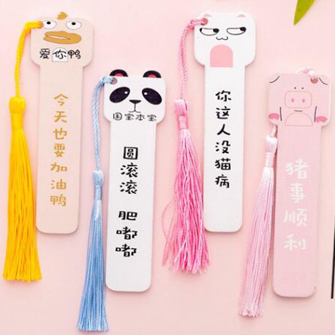Creative Cartoon Animal Bookmark Student Lovely Wooden Bookmark with Tassel