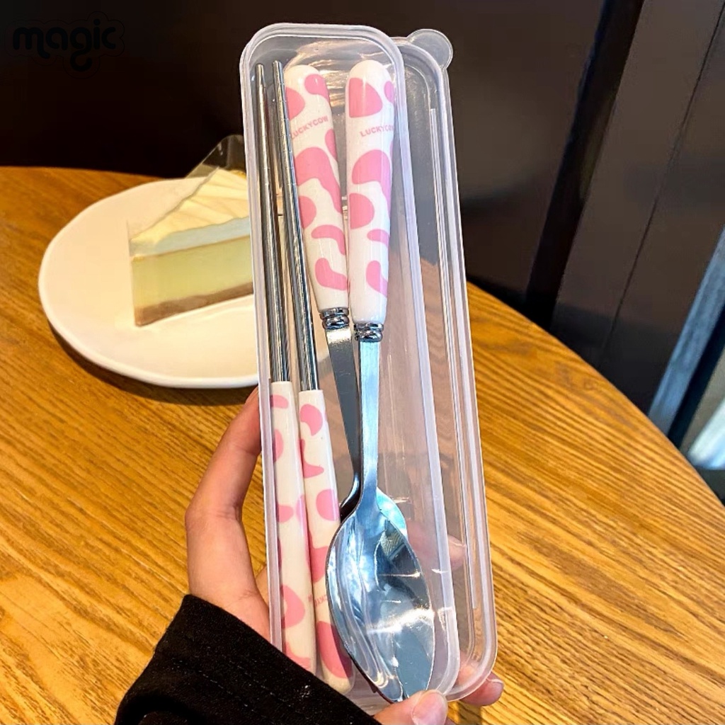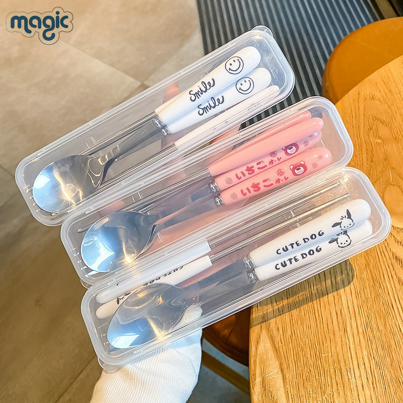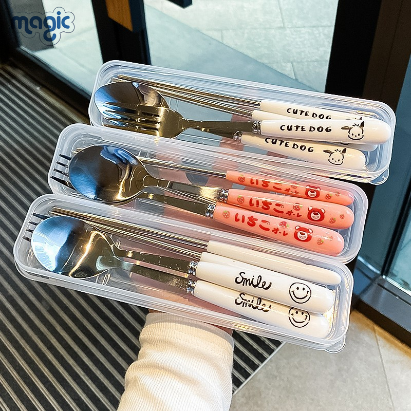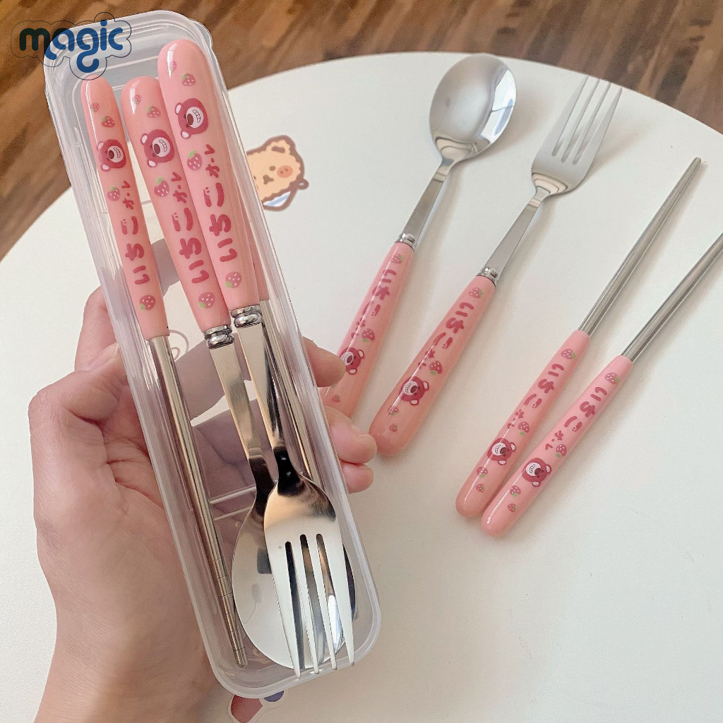 Creative Cartoon Spoon Fork Chopstick Set Stainless Steel Portable Cutlery Set 3in1